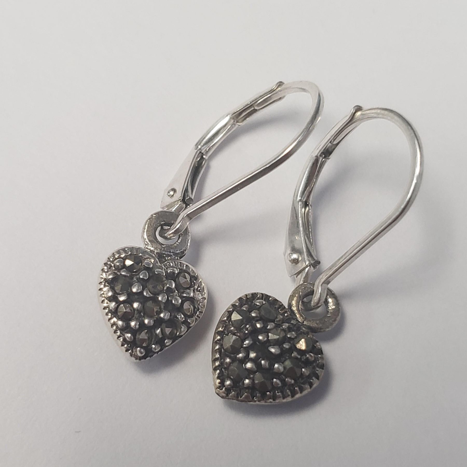 BZ1724-39 SILVER MARCASITE HEART EARRINGS