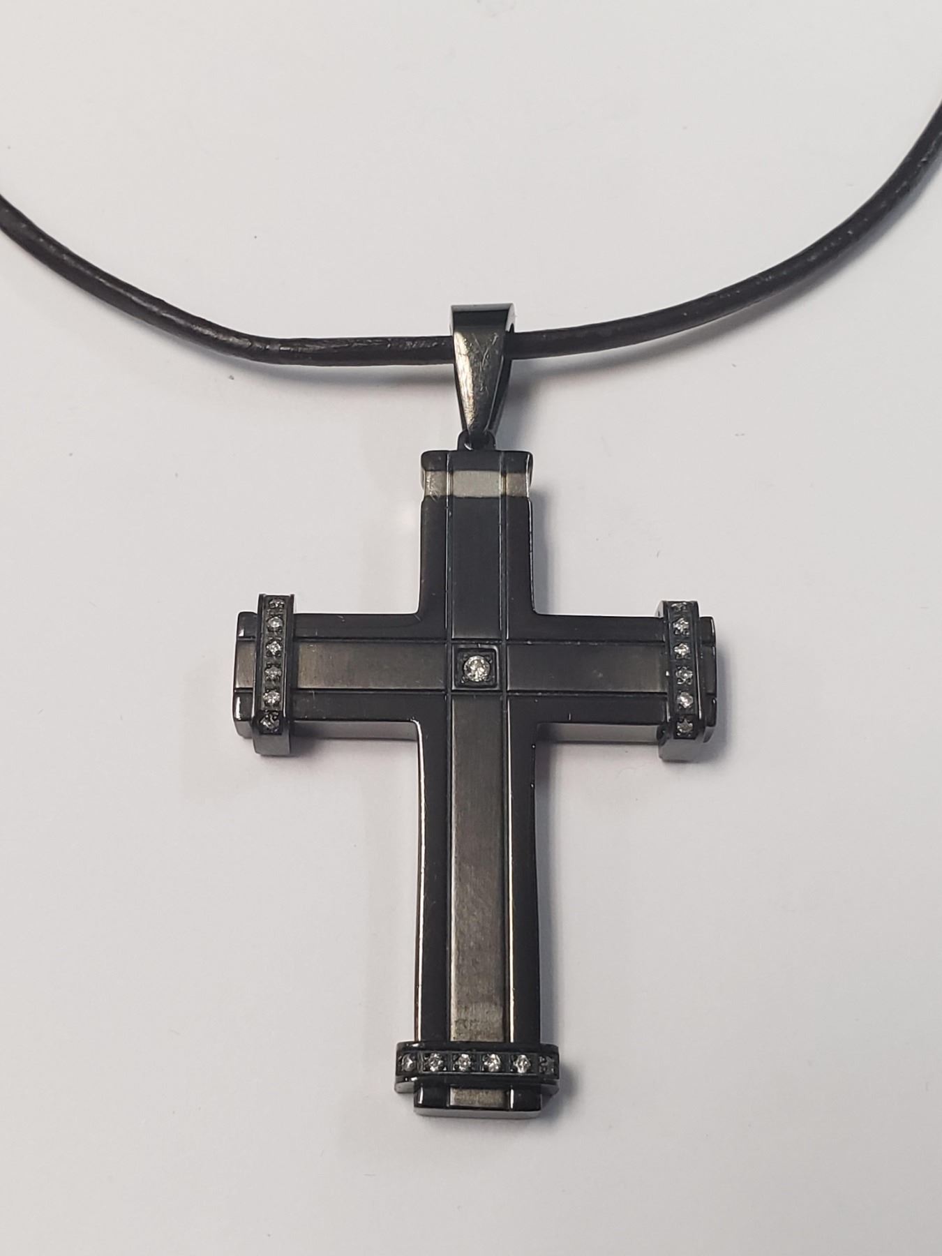 STAINLESS STEEL DIAMOND CROSS WITH LEATHER CORD