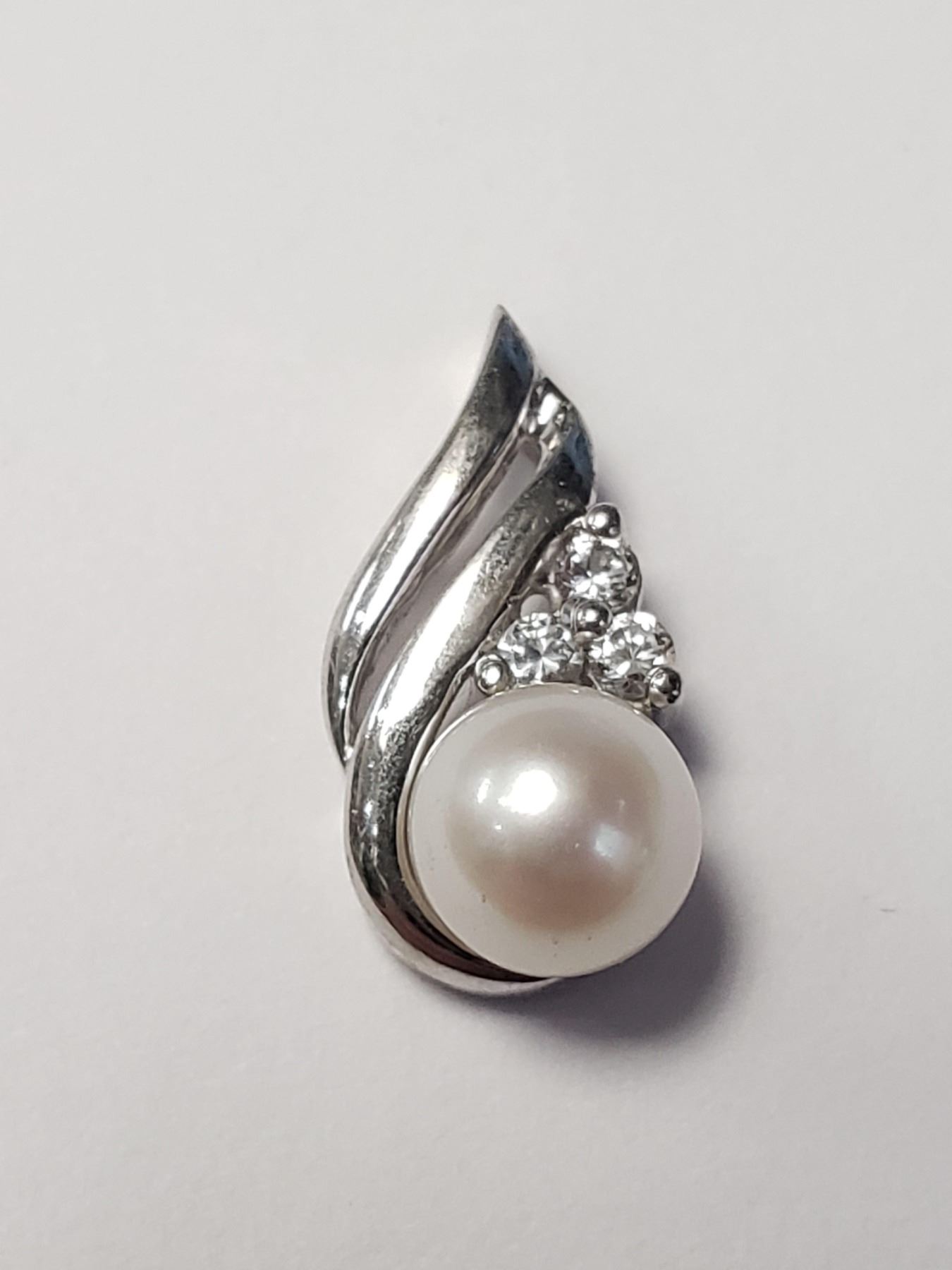 BZ1795-78 SILVER FRESH WATER PEARL AND CZ PENDANT