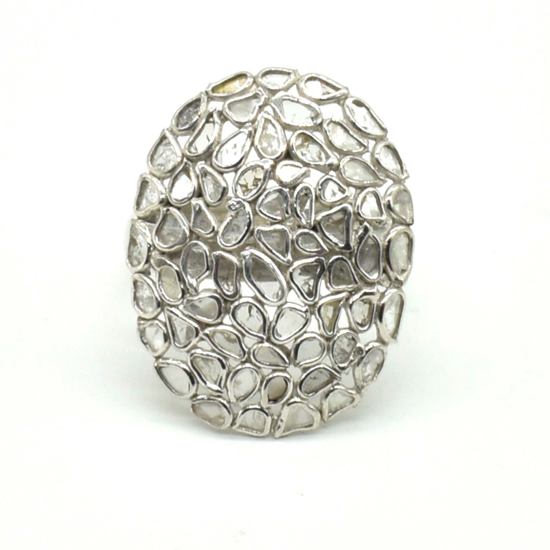 SILVER DIAMOND (1.35CT) RHODIUM PLATED RING WEIGHT 4.25G SIZE 7