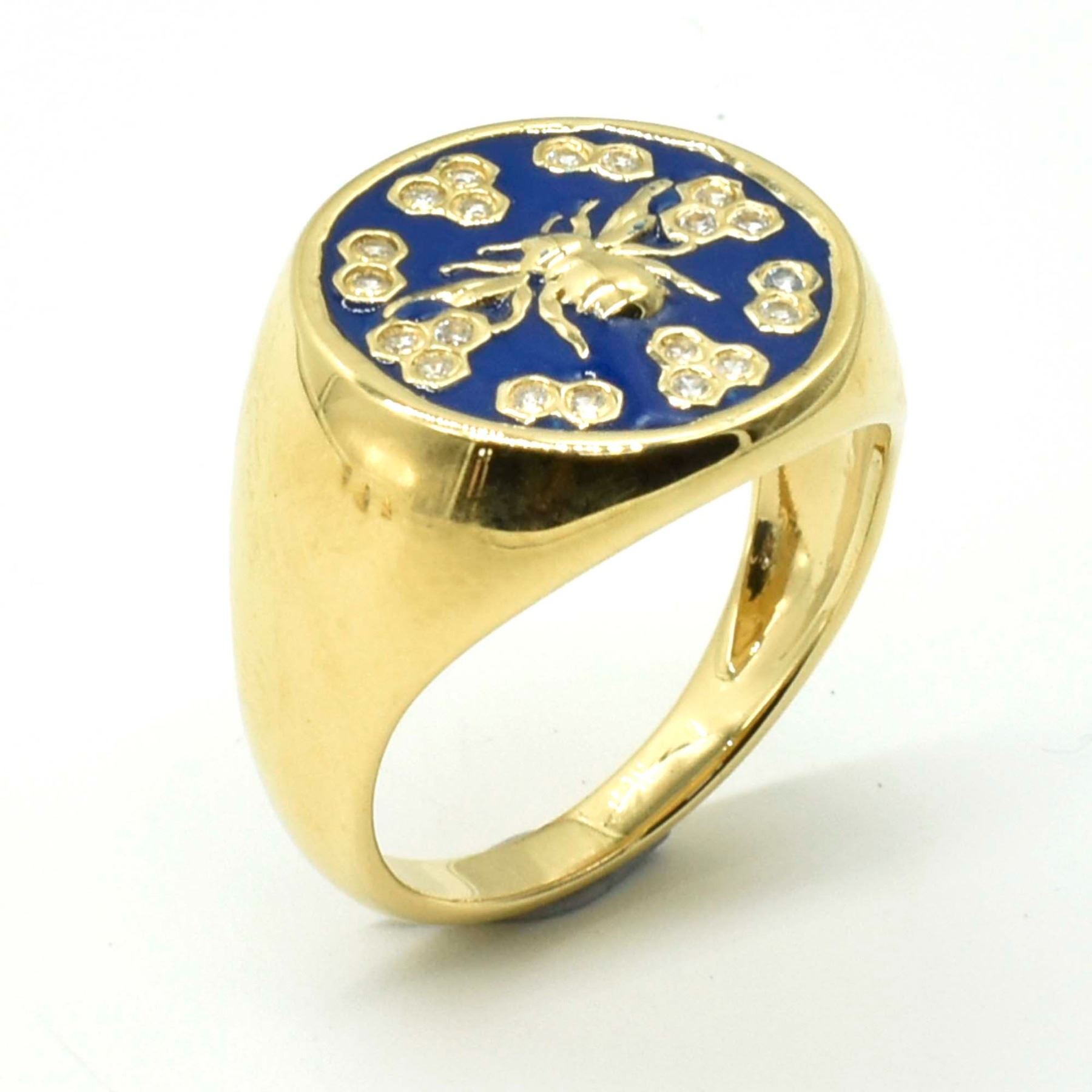 SILVER WHITE TOPAZ(0.45CT) RHODIUM PLATED ENAMEL WORK RING WEIGHT 5.45G SIZE 7