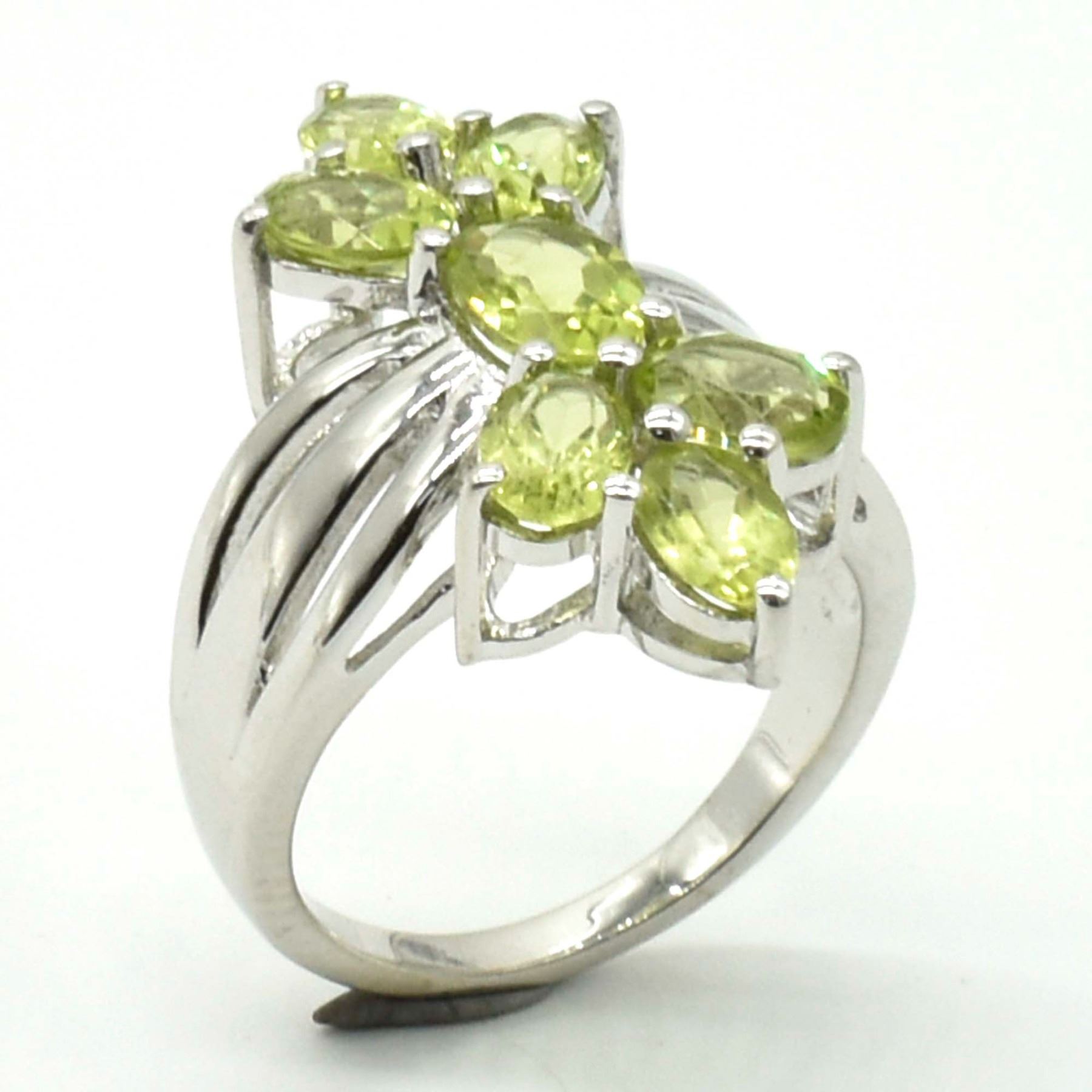 SILVER PERIDOT(2.45CT) RHODIUM PLATED RING WEIGHT 5.85G SIZE 7