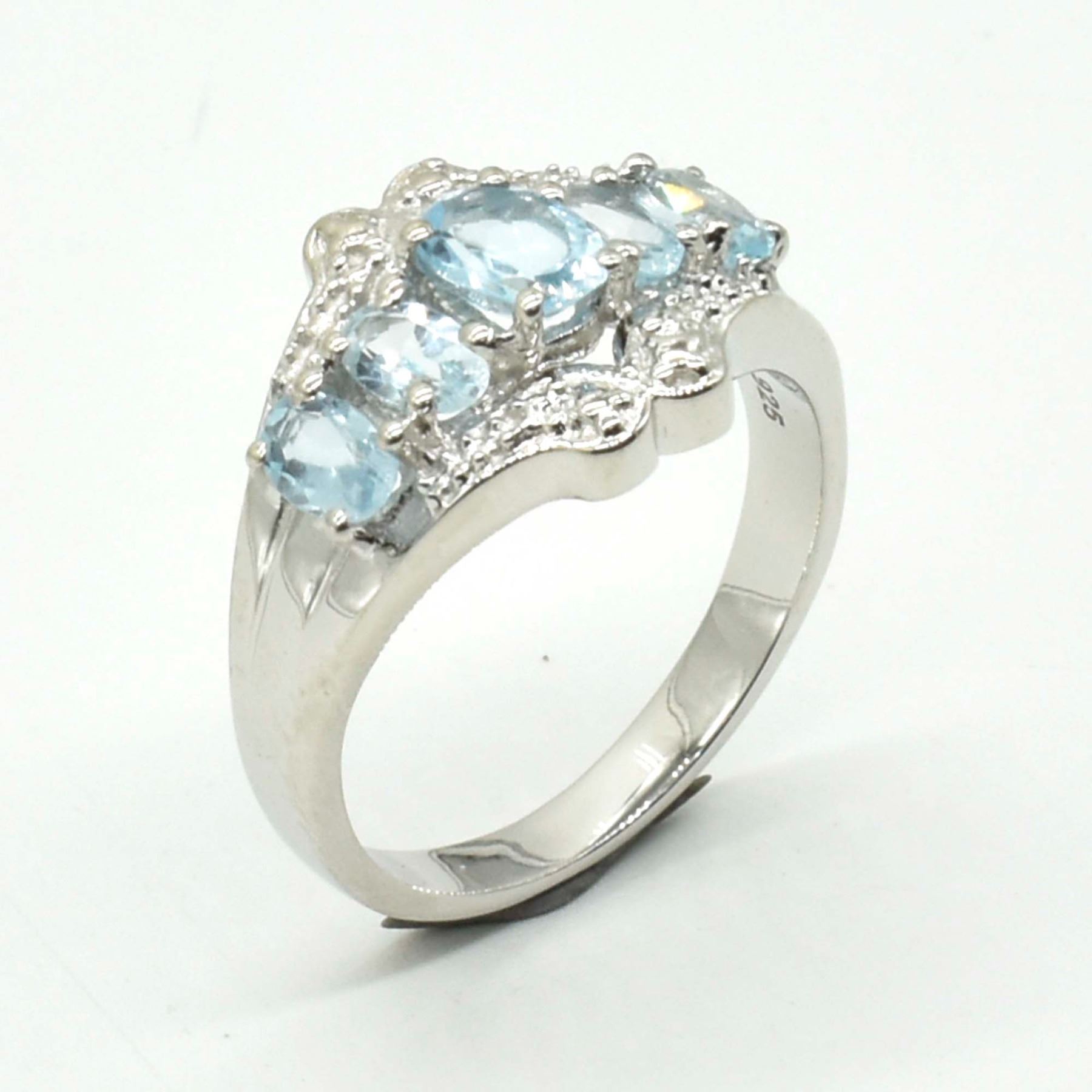 SILVER BLUE TOPAZ(1.35CT) RHODIUM PLATED RING WEIGHT 4.65G SIZE 7