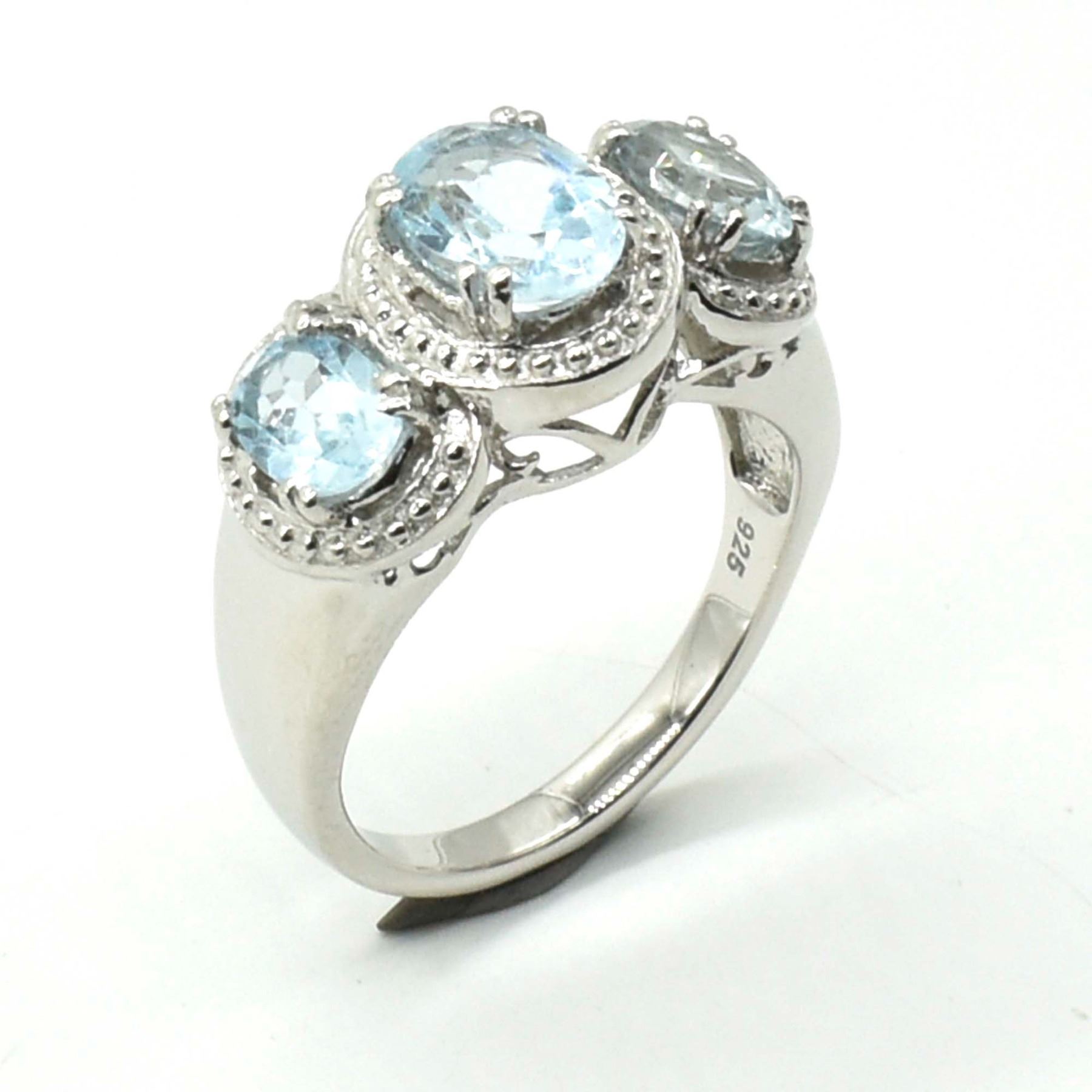 SILVER BLUE TOPAZ WHITE TOPAZ(2.25CT) RHODIUM PLATED RING WEIGHT 5.25G SIZE 7