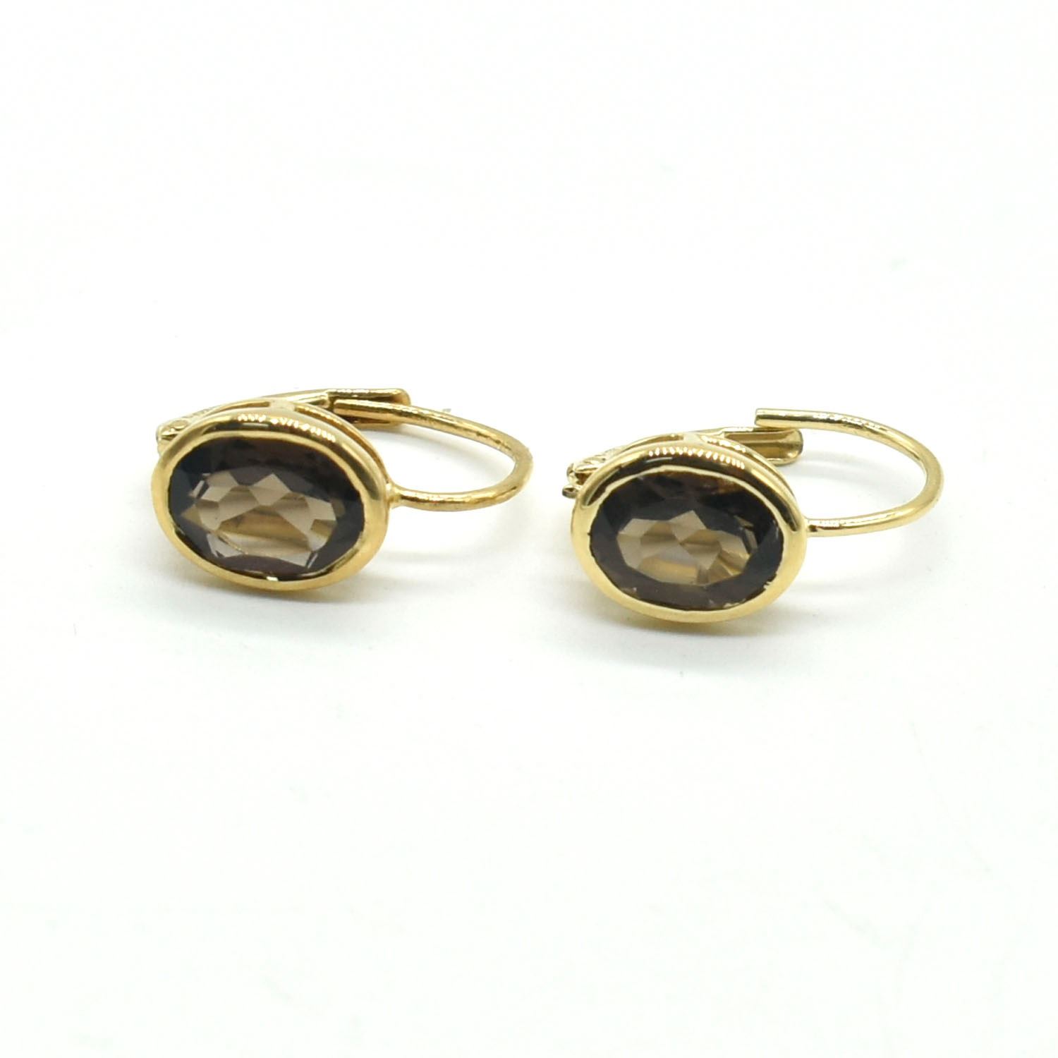 GOLD PLATED SILVER SMOKEY QUARTZ(2.1CT) GOLD RHODIUM PLATED EARRINGS WEIGHT 2.05G
