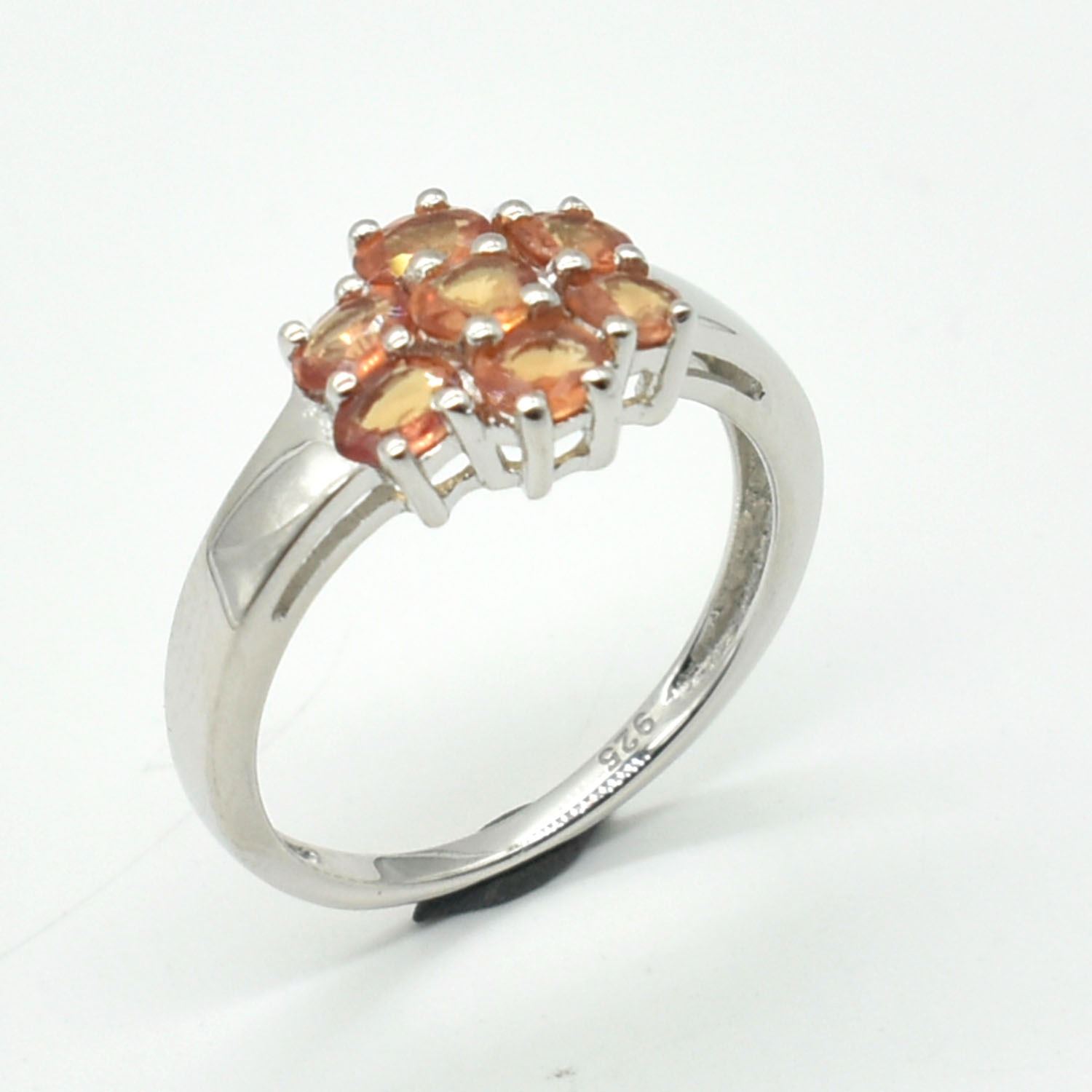 SILVER ORANGE SAPPHIRE(1.8CT) RHODIUM PLATED RING SIZE 7 WEIGHT 2.55G