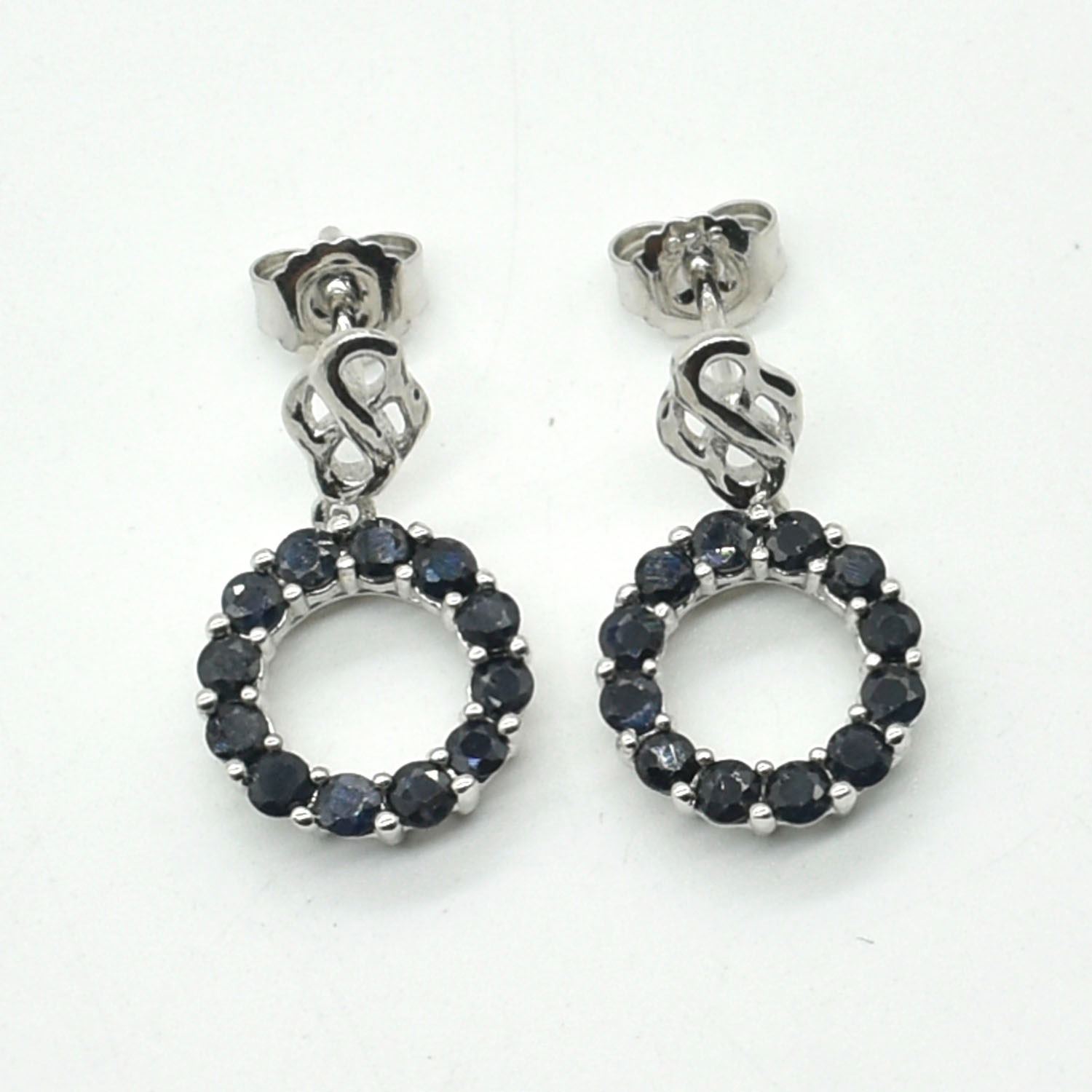 SILVER BLUE SAPPHIRE(1.8CT) RHODIUM PLATED EARRINGS WEIGHT 3.75G