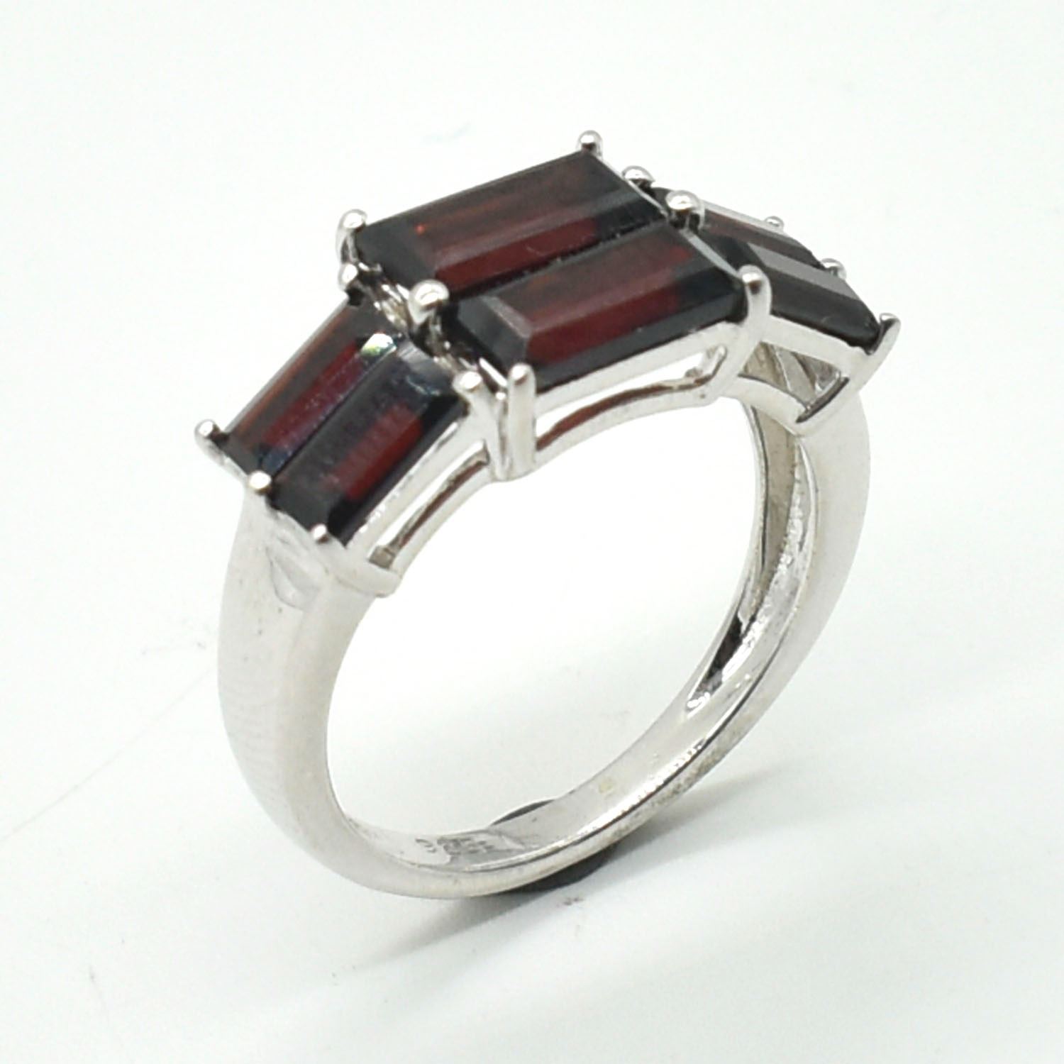 SILVER GARNET(3.8CT) RHODIUM PLATED RING SIZE 6.5 WEIGHT 3.45G