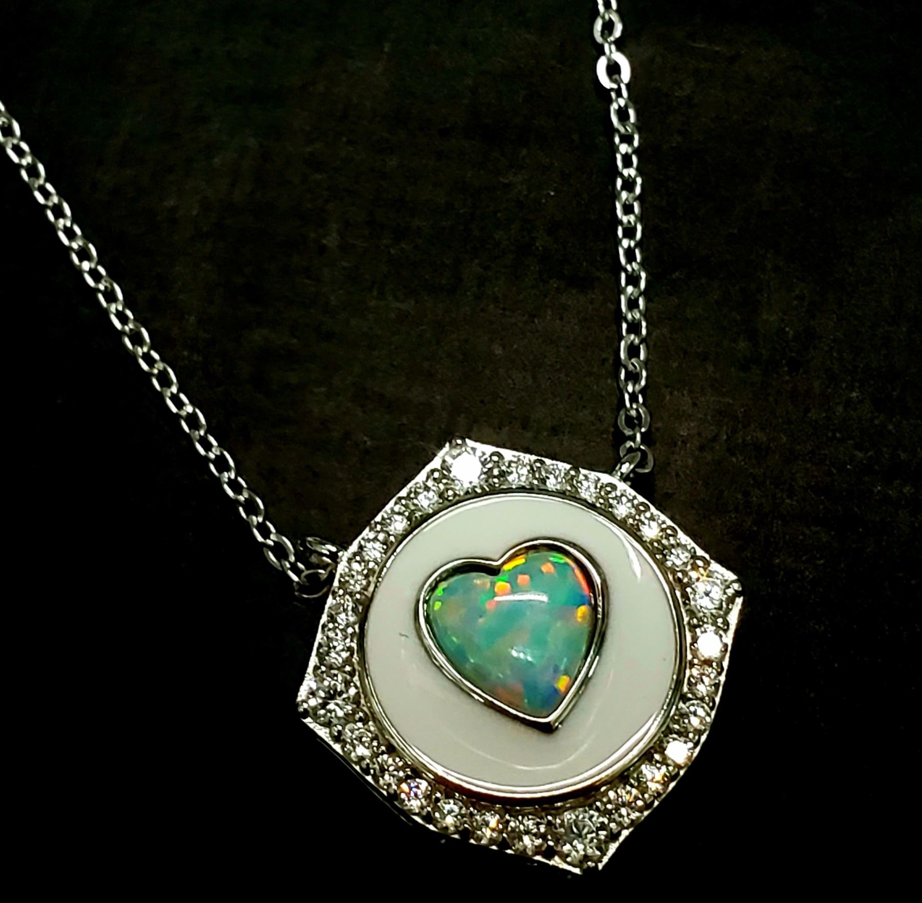 BZ1924-77L SILVER CREATED OPAL & CZ 18" NECKLACE