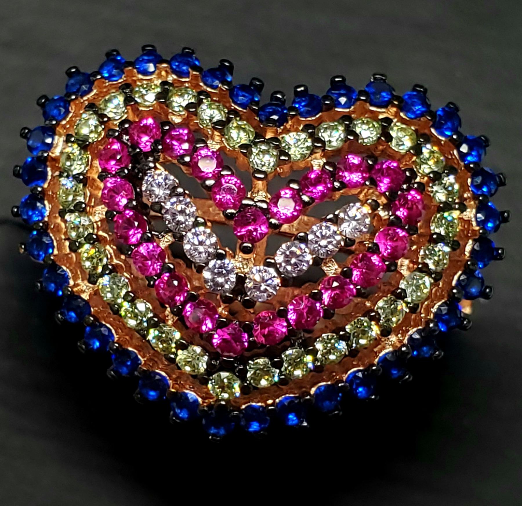 BZ1924-83L SILVER HEART SHAPE COLOR CZ RING