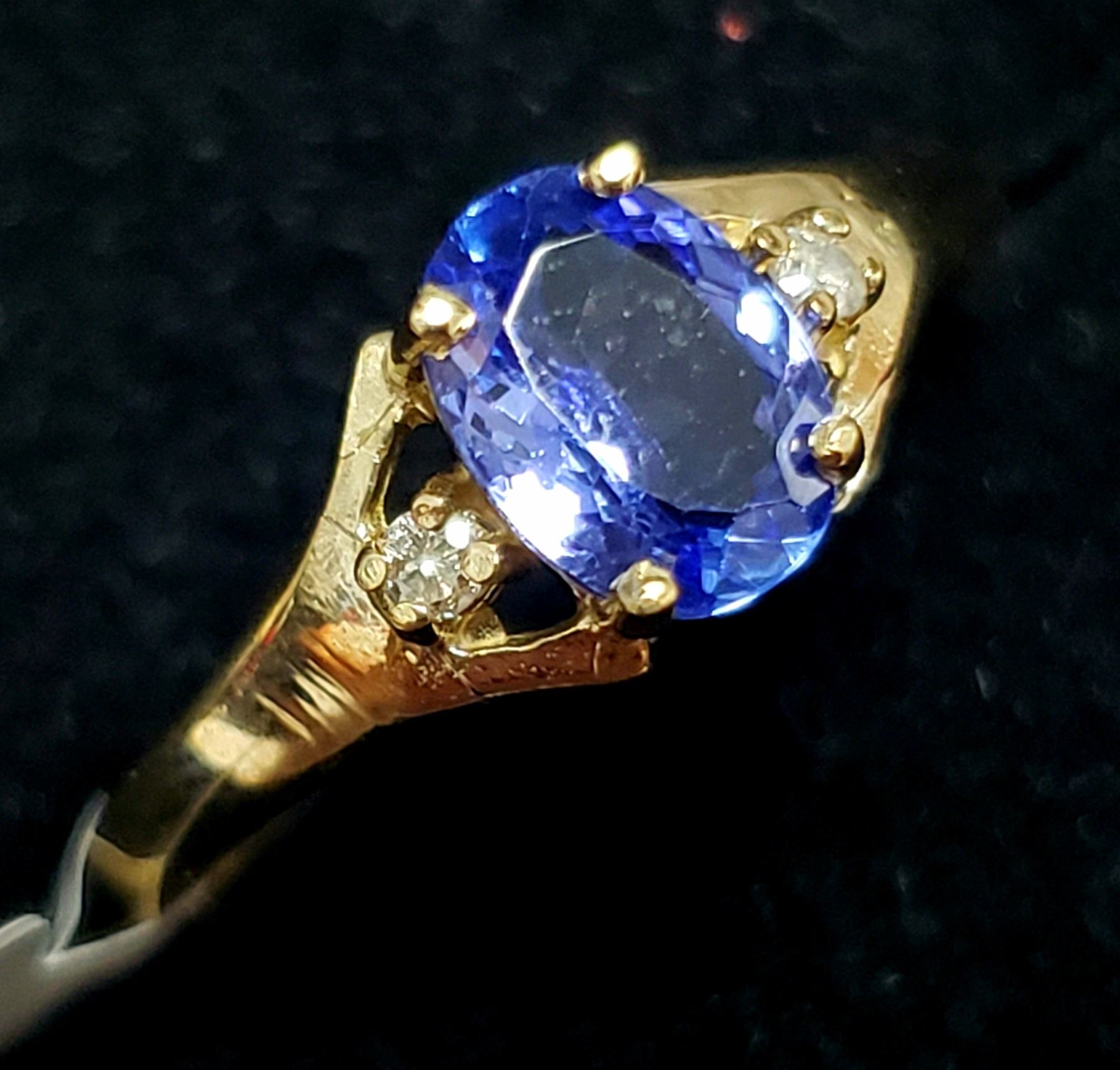 10K YELLOW GOLD TANZANITE(0.6CT) DIAMOND(0.03CT) RING SIZE 7.5, WEIGHT 1.54G, MADE IN CANADA