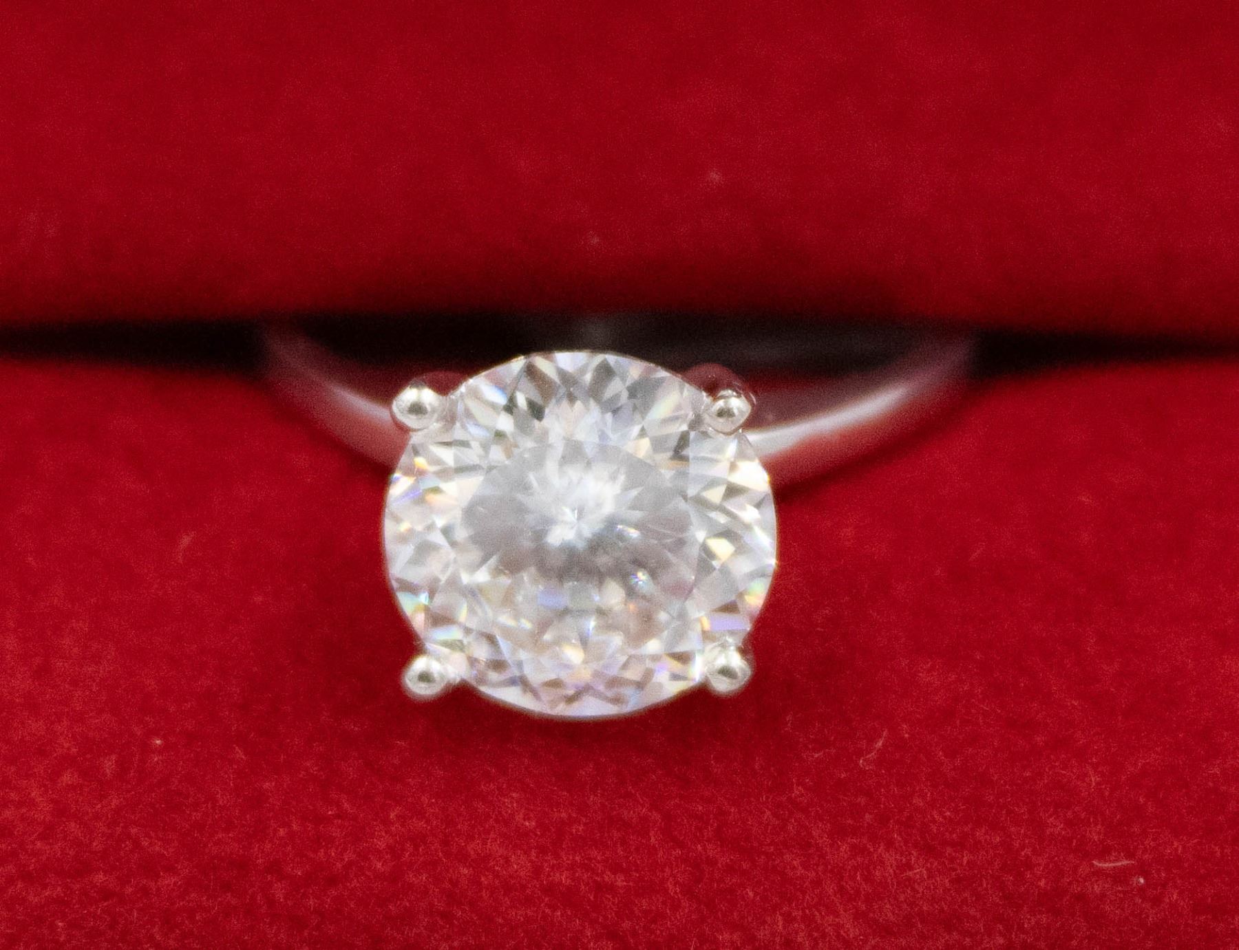 14K WHITE GOLD MOISSANITE(2.41CT) RING SIZE 6, WEIGHT 2.43G, MADE IN CANADA