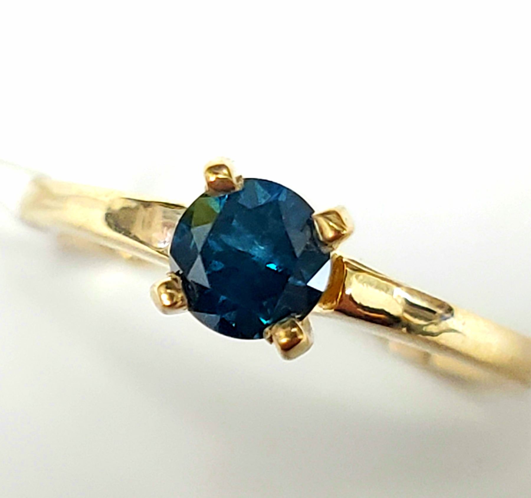 10K YELLOW GOLD NATURAL BLUE DIAMOND TREATED(0.41CT) RING SIZE 6, WEIGHT 1.73G, MADE IN CANADA