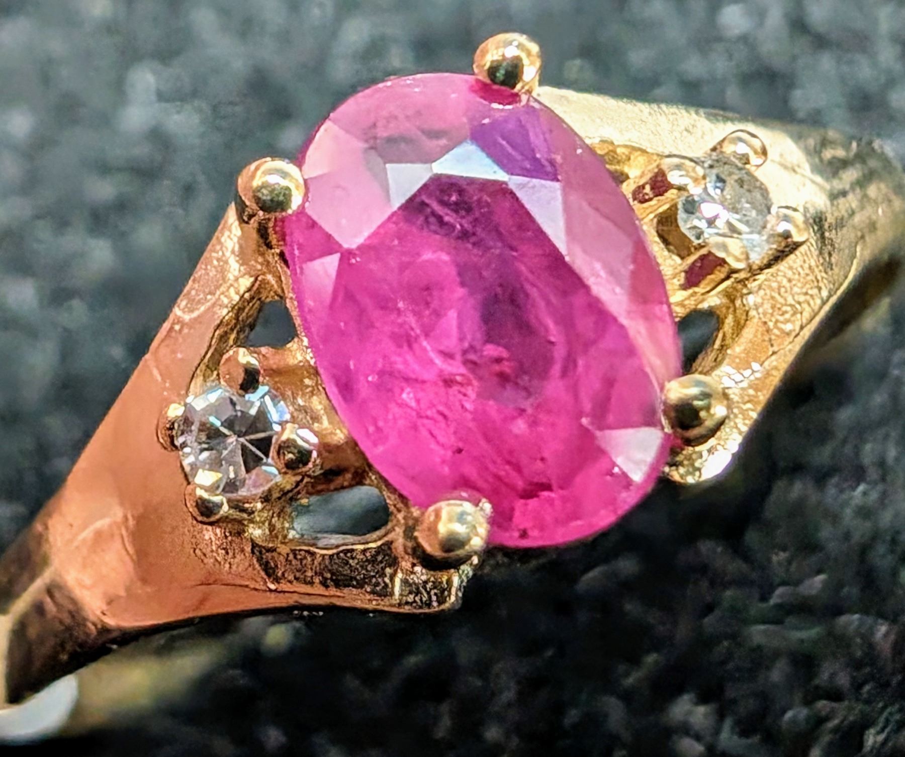 10K YELLOW GOLD 1.6G RUBY 0.76G DIAMOND 0.02CT RING SIZE 7.5, MADE IN CANADA **ALL ITEMS MUST BE REMOVED BY 5PM SATURDAY, AUGUST 17th 2024. ALL REMAINING ITEMS WILL BE SUBJECT TO A $6.00 PER DAY STORAGE CHARGE. ANY ITEMS REMAINING AFTER MONDAY, SEPTEMBER 9TH 2024 WILL BE CONSIDERED FORFEITED. NO REFUNDS WILL BE ISSUED FOR FORFEITED ITEMS. TO SCHEDULE A PICK UP APPOINTMENT CLICK HERE
