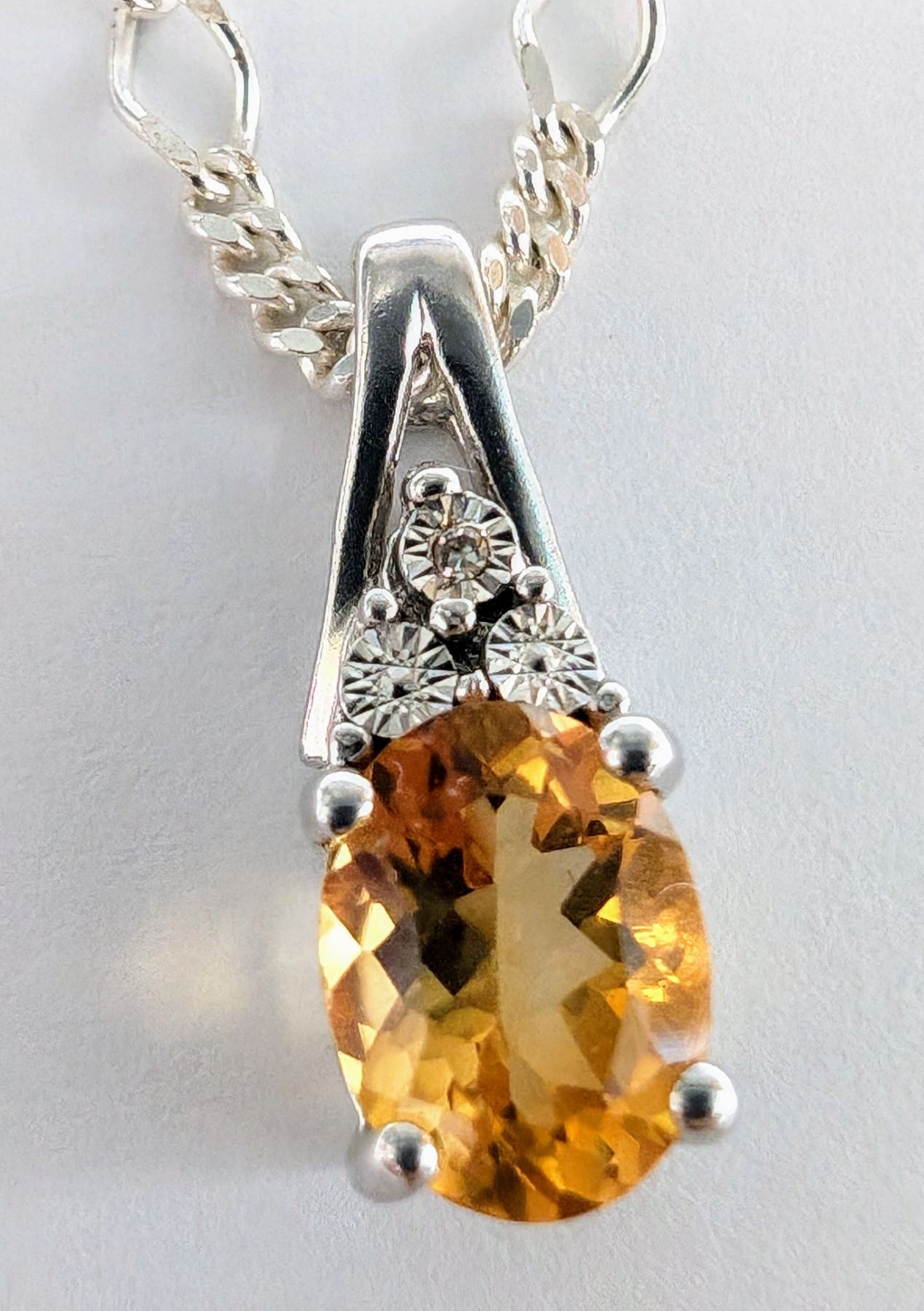 SILVER CITRINE AND DIAMOND WITH CHAIN NECKLACE