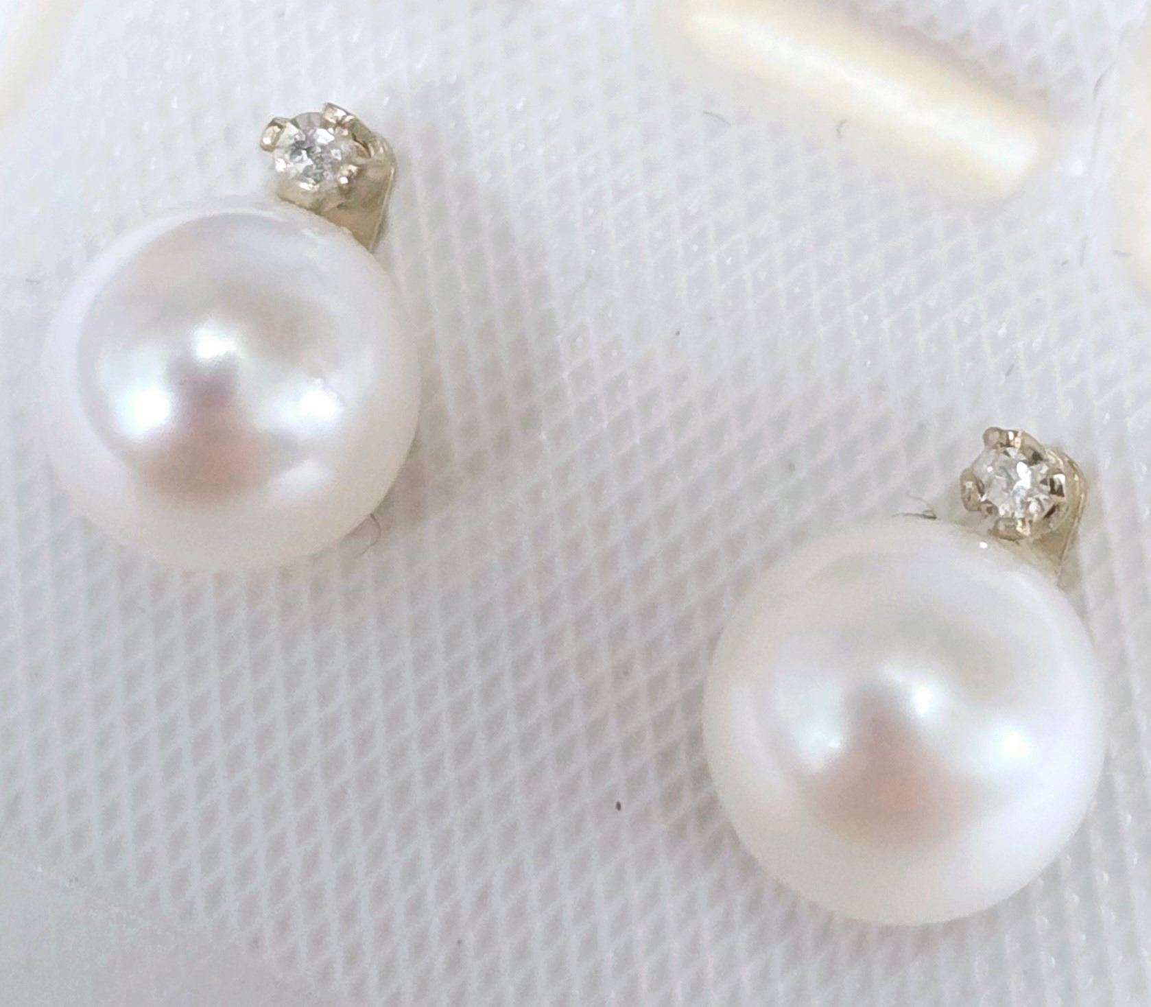 14K YELLOW GOLD PEARL AND DIAMOND EARRINGS, MADE IN CANADA