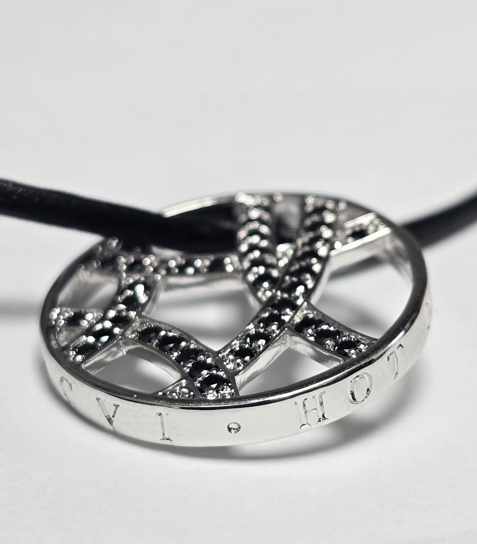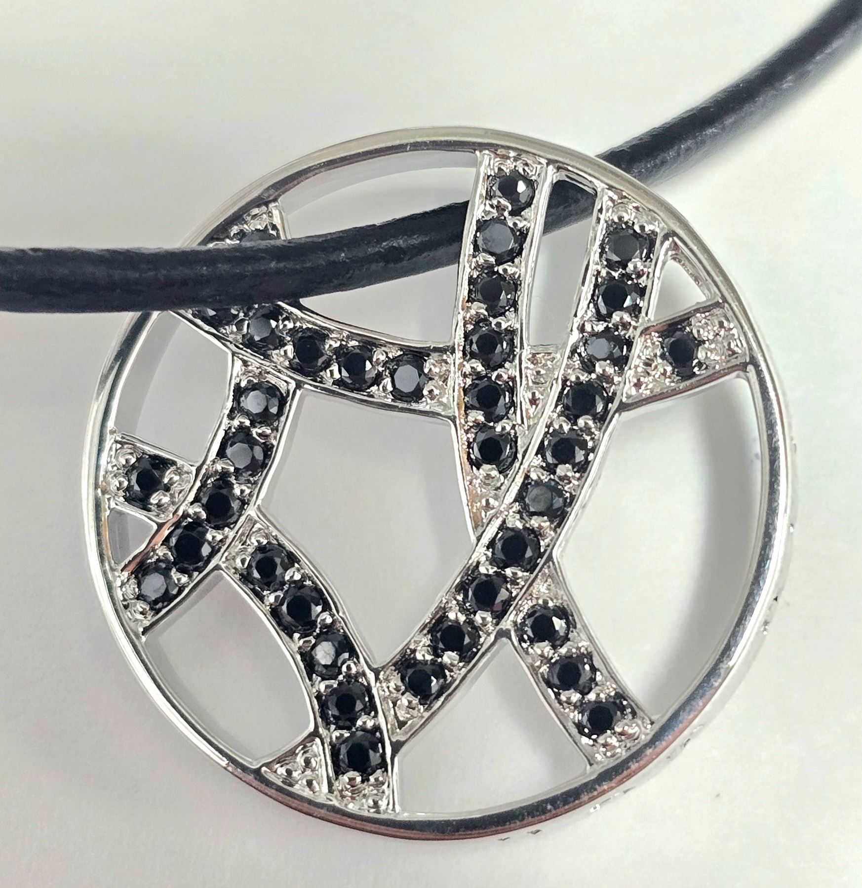 BZ2053-75C SILVER DIAMOND & BLACK CZ WITH LEATHER
