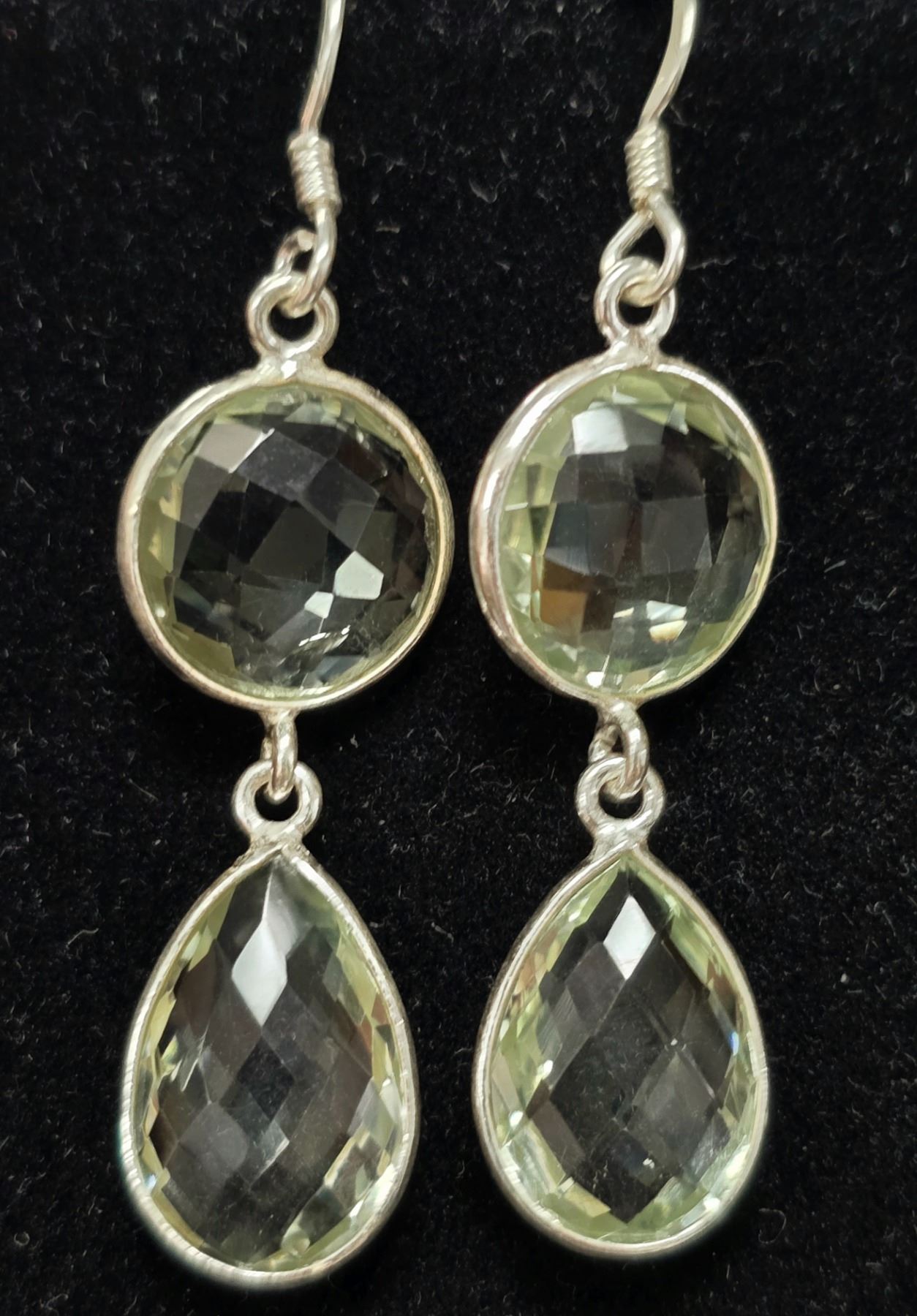 SILVER GREEN AMETHYST 15.55CT 5.65G EARRINGS