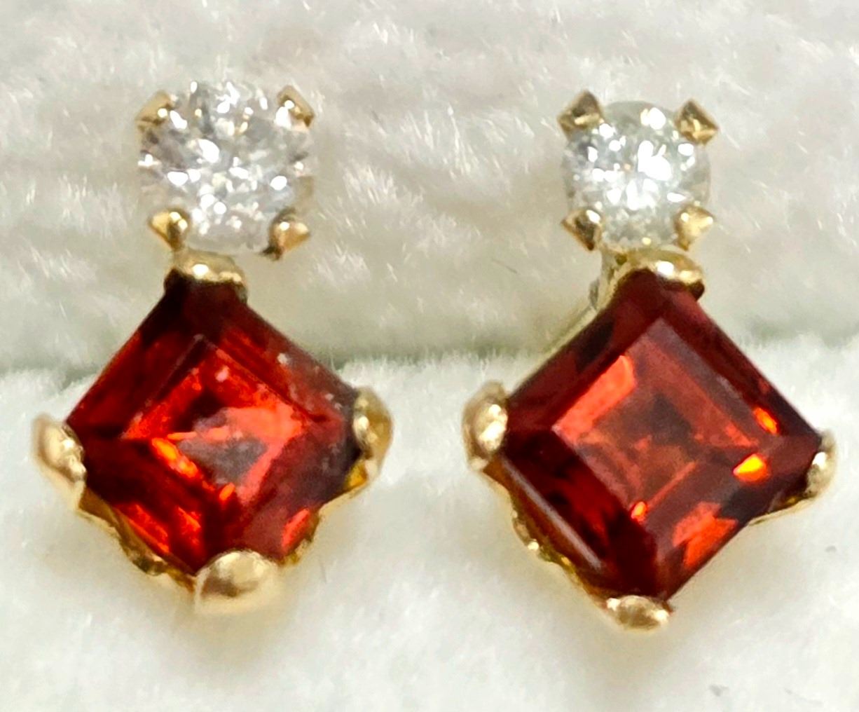 10K GARNET 0.44CT & DIA 0.06CT EARRINGS, MADE IN CANADA