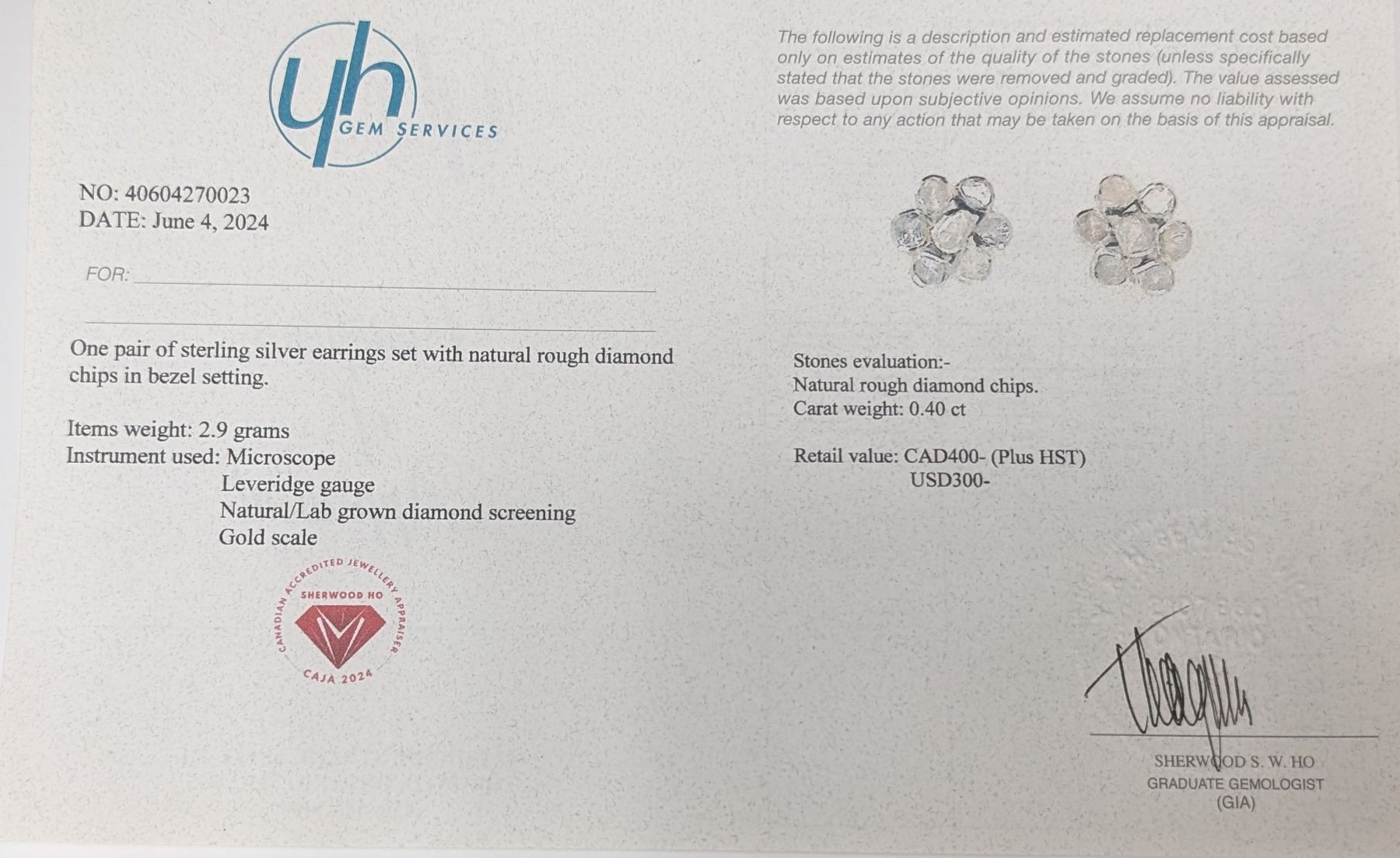 SILVER 2.9G NATURAL DIAMOND 0.4CT EARRINGS **ALL ITEMS MUST BE REMOVED BY 5PM SATURDAY, DECEMBER 21ST 2024. ALL REMAINING ITEMS WILL BE SUBJECT TO A $6.00 PER DAY STORAGE CHARGE. ANY ITEMS REMAINING AFTER MONDAY, JANUARY 6TH 2025 WILL BE CONSIDERED FORFEITED. NO REFUNDS WILL BE ISSUED FOR FORFEITED ITEMS. TO SCHEDULE A PICK UP APPOINTMENT CLICK HERE