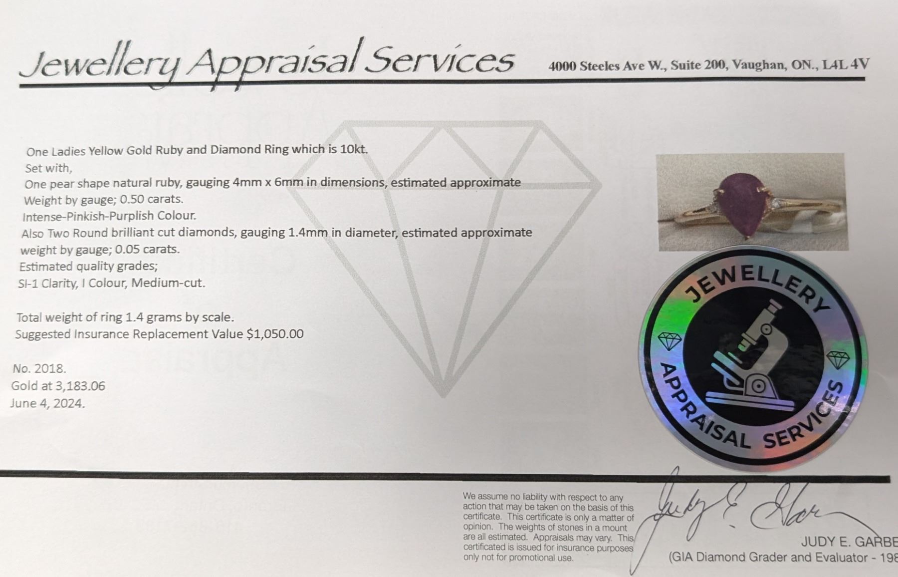 10K YELLOW GOLD SIZE 6.5, MADE IN CANADA, APPRAISED RETAIL $1050 **ALL ITEMS MUST BE REMOVED BY 5PM SATURDAY, JANUARY 4TH 2025. ALL REMAINING ITEMS WILL BE SUBJECT TO A $6.00 PER DAY STORAGE CHARGE. ANY ITEMS REMAINING AFTER MONDAY, JANUARY 27TH 2025 WILL BE CONSIDERED FORFEITED. NO REFUNDS WILL BE ISSUED FOR FORFEITED ITEMS. TO SCHEDULE A PICK UP APPOINTMENT CLICK HERE
