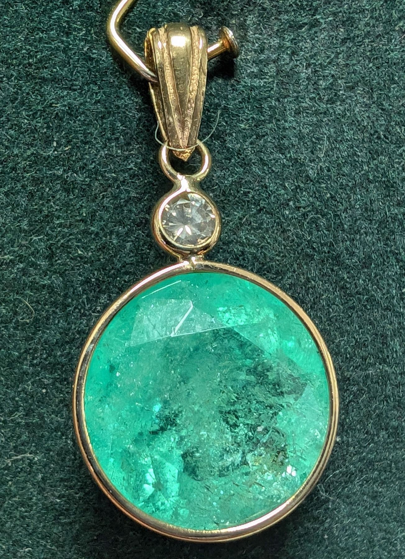 14K YELLOW GOLD COLOMBIA EMERALD 6CT PENDANT, MADE IN CANADA, APPRAISED RETAIL $3030 **ALL ITEMS MUST BE REMOVED BY 5PM SATURDAY, FEBRUARY 8TH 2025. ALL REMAINING ITEMS WILL BE SUBJECT TO A $6.00 PER DAY STORAGE CHARGE. ANY ITEMS REMAINING AFTER MONDAY, MARCH 3RD 2025 WILL BE CONSIDERED FORFEITED. NO REFUNDS WILL BE ISSUED FOR FORFEITED ITEMS. TO SCHEDULE A PICK UP APPOINTMENT CLICK HERE
