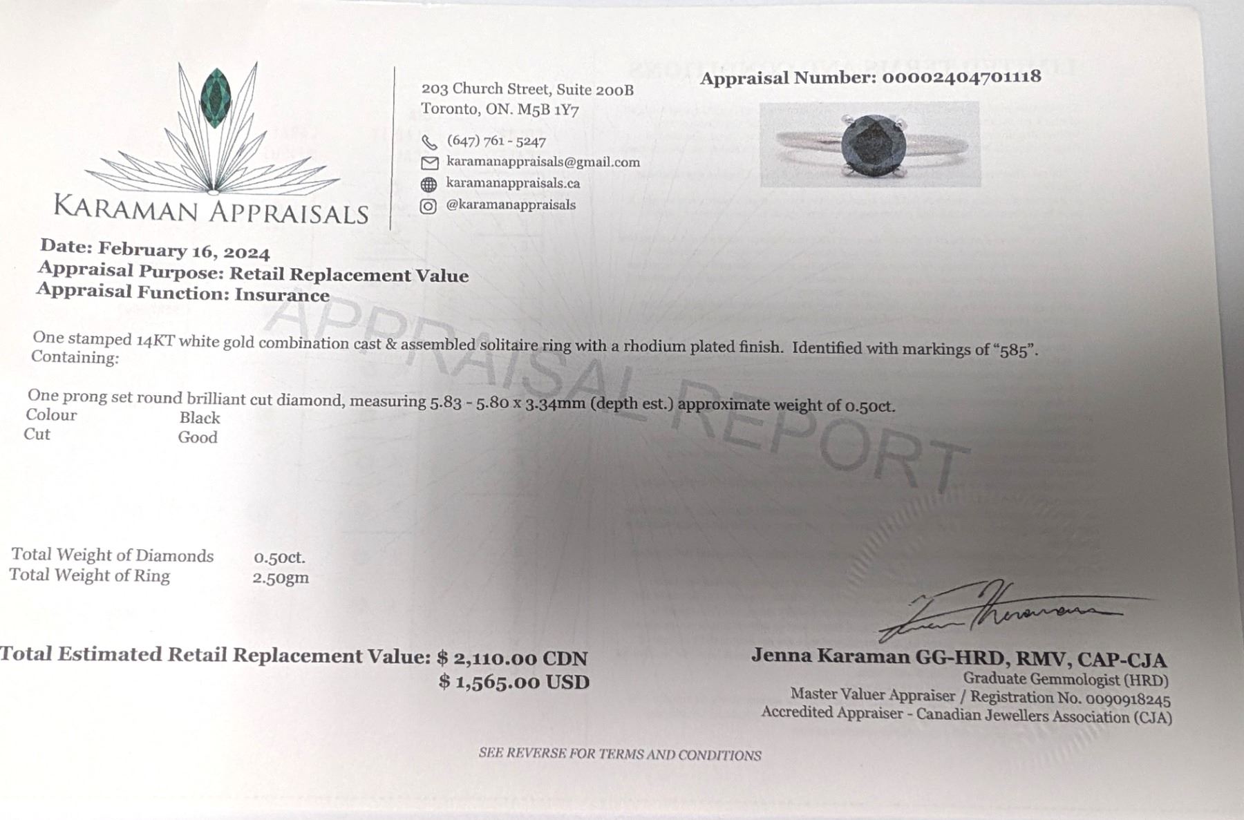 14K WHITE GOLD 2.5G BLACK DIAMOND 0.5CT RING SIZE 6.5, MADE IN CANADA, APPRAISED RETAIL $2110 **ALL ITEMS MUST BE REMOVED BY 5PM SATURDAY, MAY 10TH 2025. ALL REMAINING ITEMS WILL BE SUBJECT TO A $6.00 PER DAY STORAGE CHARGE. ANY ITEMS REMAINING AFTER MONDAY, MAY 26TH 2025 WILL BE CONSIDERED FORFEITED. NO REFUNDS WILL BE ISSUED FOR FORFEITED ITEMS. TO SCHEDULE A PICK UP APPOINTMENT CLICK HERE