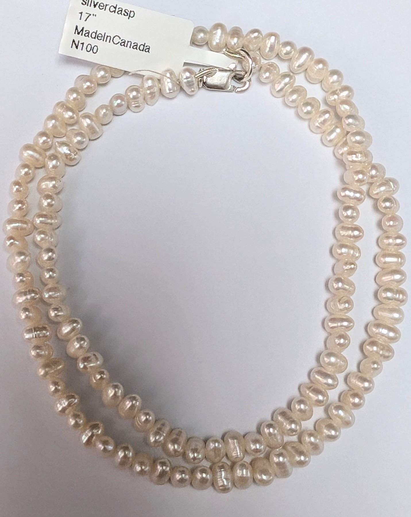 SILVER PEARL 17" NECKLACE, MADE IN CANADA