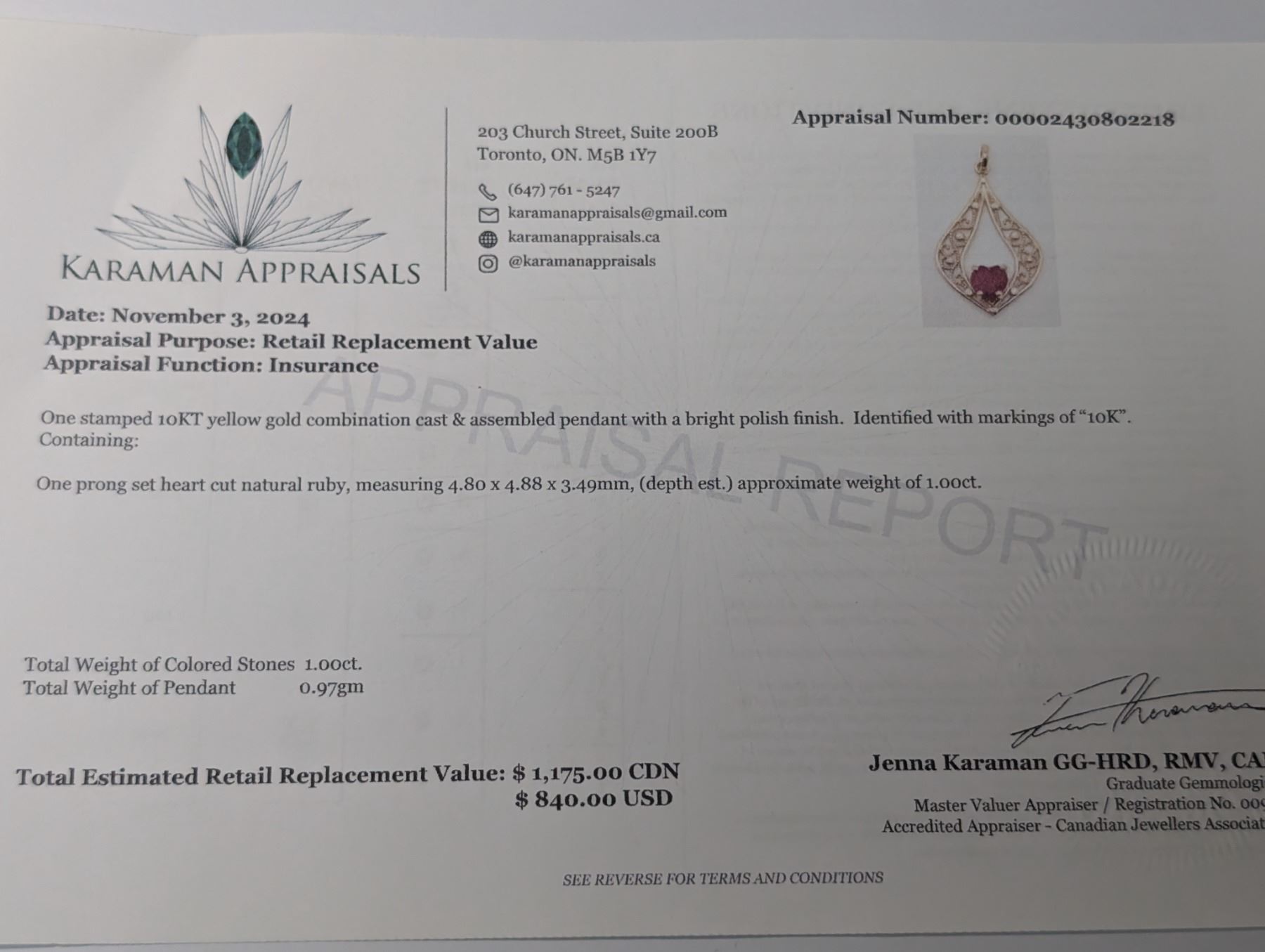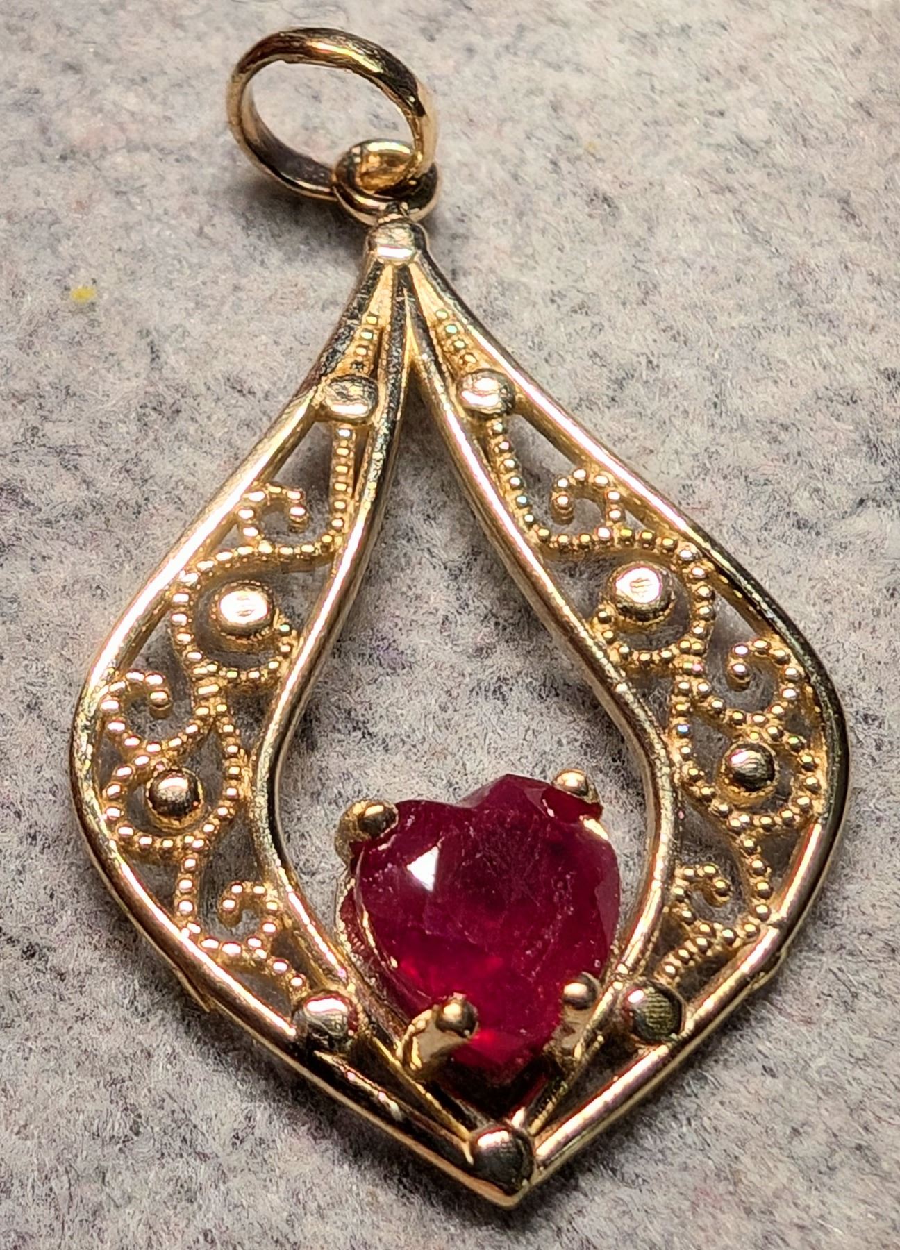 10K YELLOW GOLD RUBY 1CT PENDANT, MADE IN CANADA, APPRAISED RETAIL $1175 **ALL ITEMS MUST BE REMOVED BY 5PM SATURDAY, MAY 24TH 2025. ALL REMAINING ITEMS WILL BE SUBJECT TO A $6.00 PER DAY STORAGE CHARGE. ANY ITEMS REMAINING AFTER MONDAY, JUNE 9TH 2025 WILL BE CONSIDERED FORFEITED. NO REFUNDS WILL BE ISSUED FOR FORFEITED ITEMS. TO SCHEDULE A PICK UP APPOINTMENT CLICK HERE
