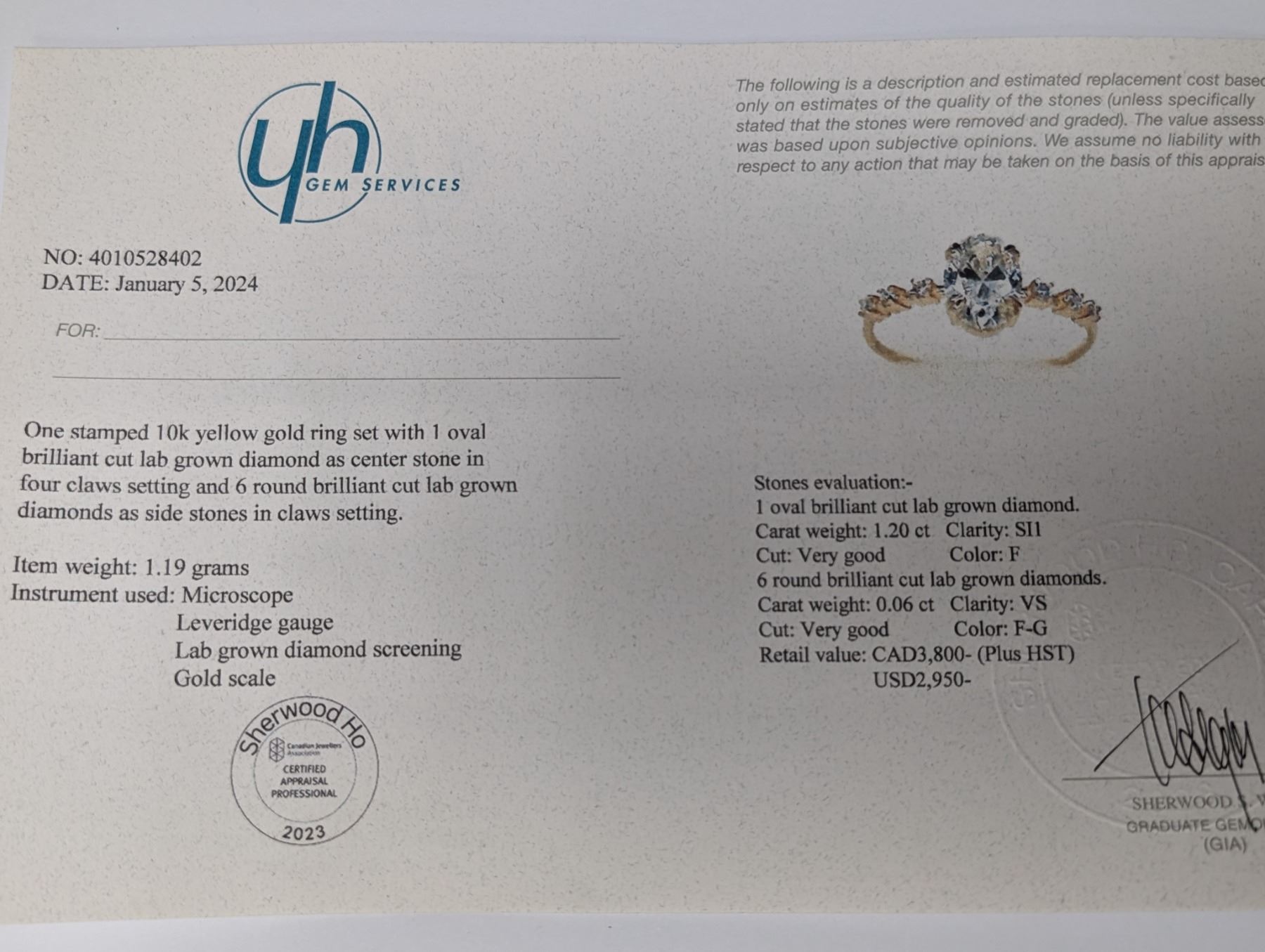 10K YELLOW GOLD 1.19G LAB DIAMOND 1.2CT + 0.06CT RING SIZE 6.05, MADE IN CANADA, APPRAISED RETAIL $3800 **ALL ITEMS MUST BE REMOVED BY 5PM SATURDAY, MAY 24TH 2025. ALL REMAINING ITEMS WILL BE SUBJECT TO A $6.00 PER DAY STORAGE CHARGE. ANY ITEMS REMAINING AFTER MONDAY, JUNE 9TH 2025 WILL BE CONSIDERED FORFEITED. NO REFUNDS WILL BE ISSUED FOR FORFEITED ITEMS. TO SCHEDULE A PICK UP APPOINTMENT CLICK HERE