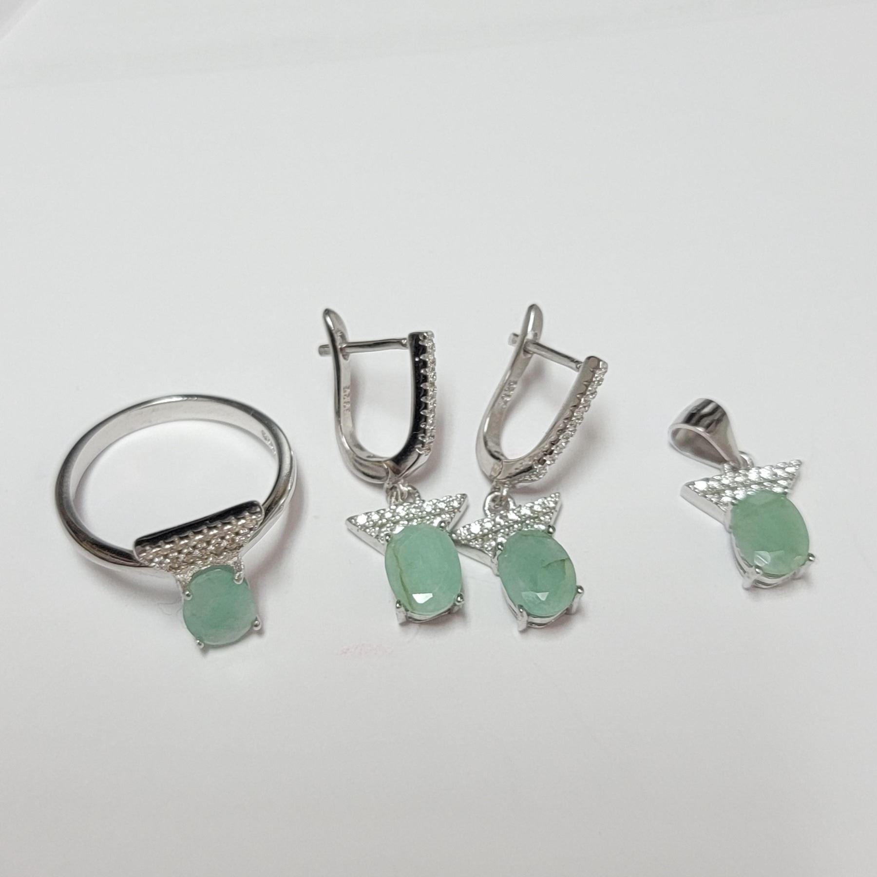 SILVER EMERALD RING PENDANT AND EARRING(6.4CT) SET
