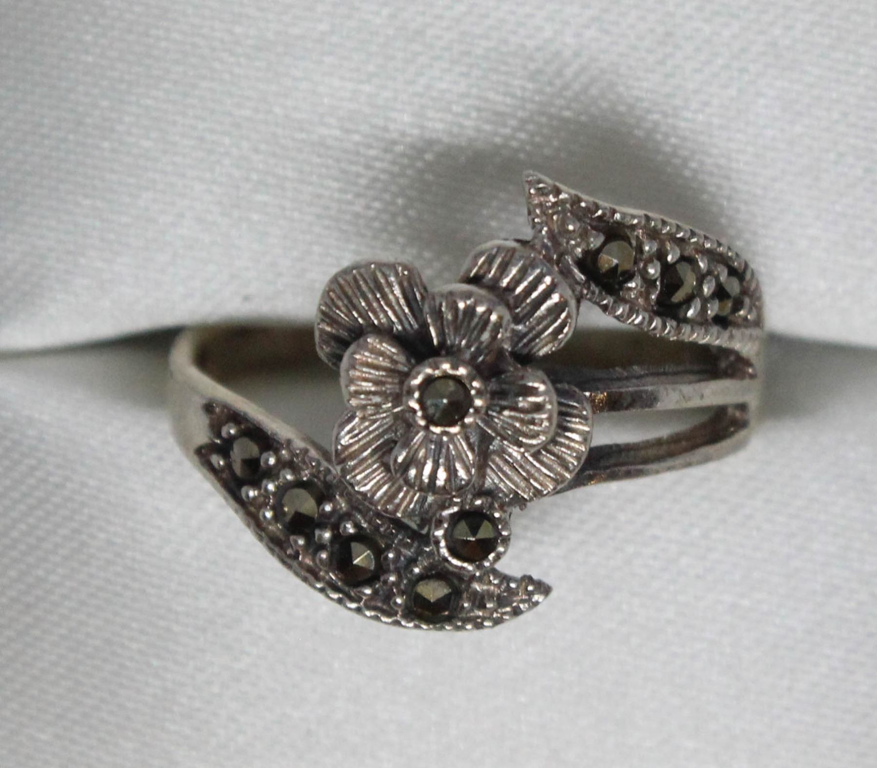 BZ415-177 SILVER MARCASITE RING SZ 5.75