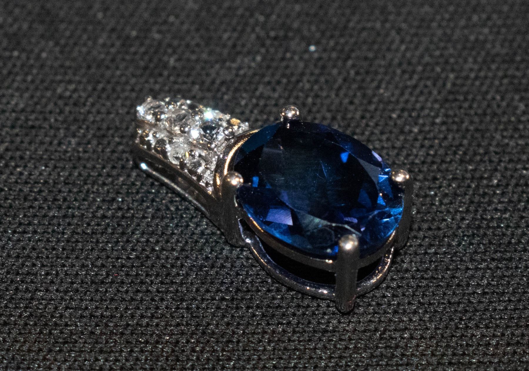 BZ511-56 SILVER CREATED SAPPHIRE PENDANT
