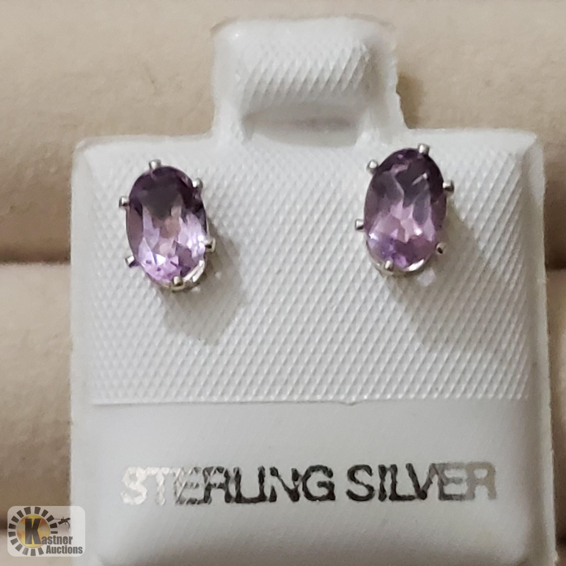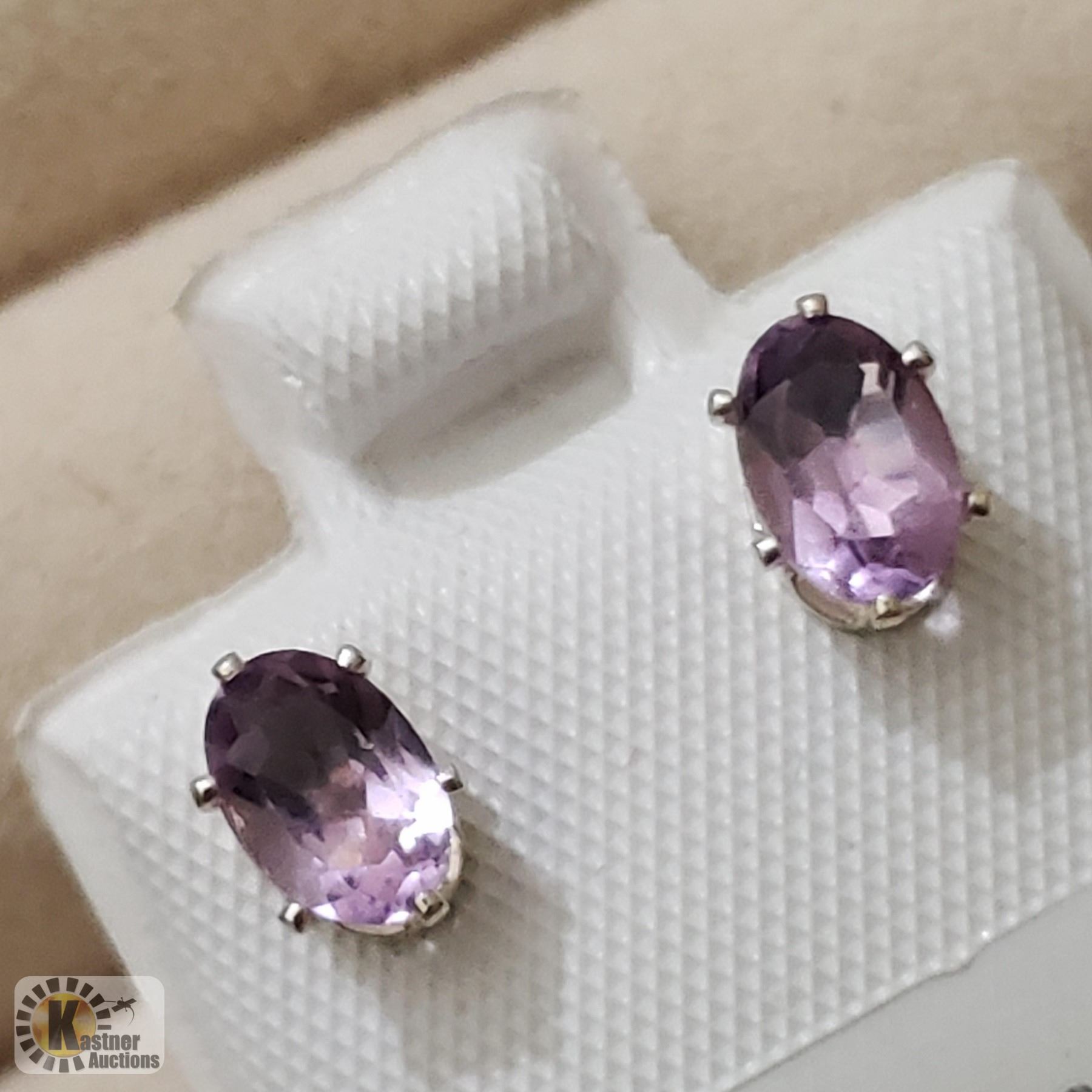 SILVER AMETYHYST (0.8CT) EARRINGS, MADE IN CANADA, SUGGESTED RETAIL $80