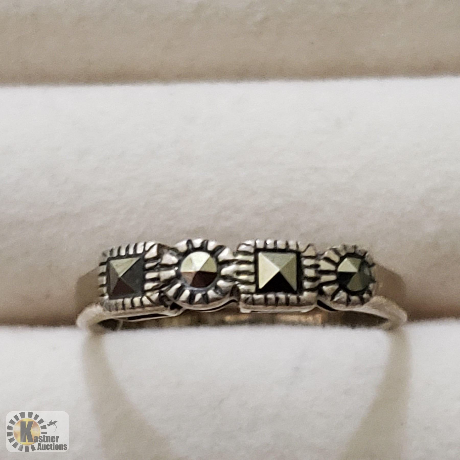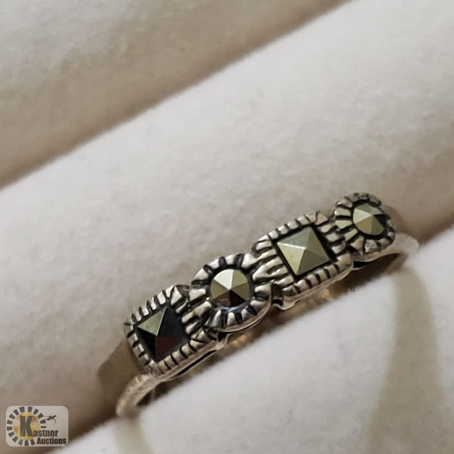 SILVER MARCASITE RING SIZE 6.5, SUGGESTED RETAIL VALUE $50