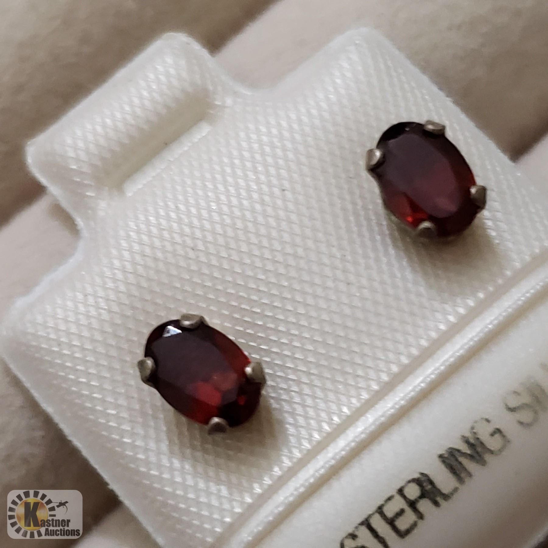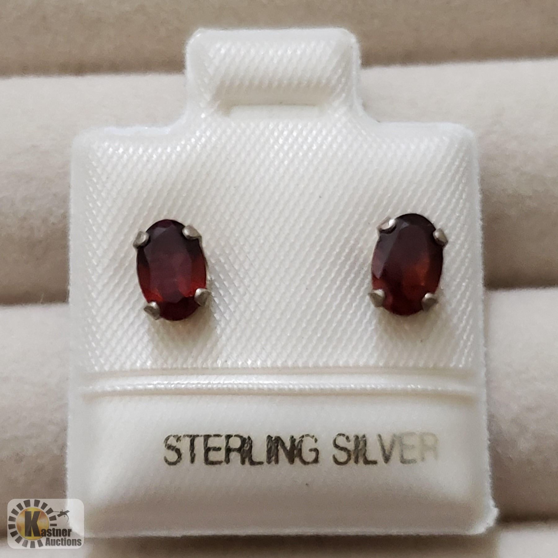 SILVER GARNET EARRINGS, MADE IN CANADA, SUGGESTED RETAIL VALUE $80