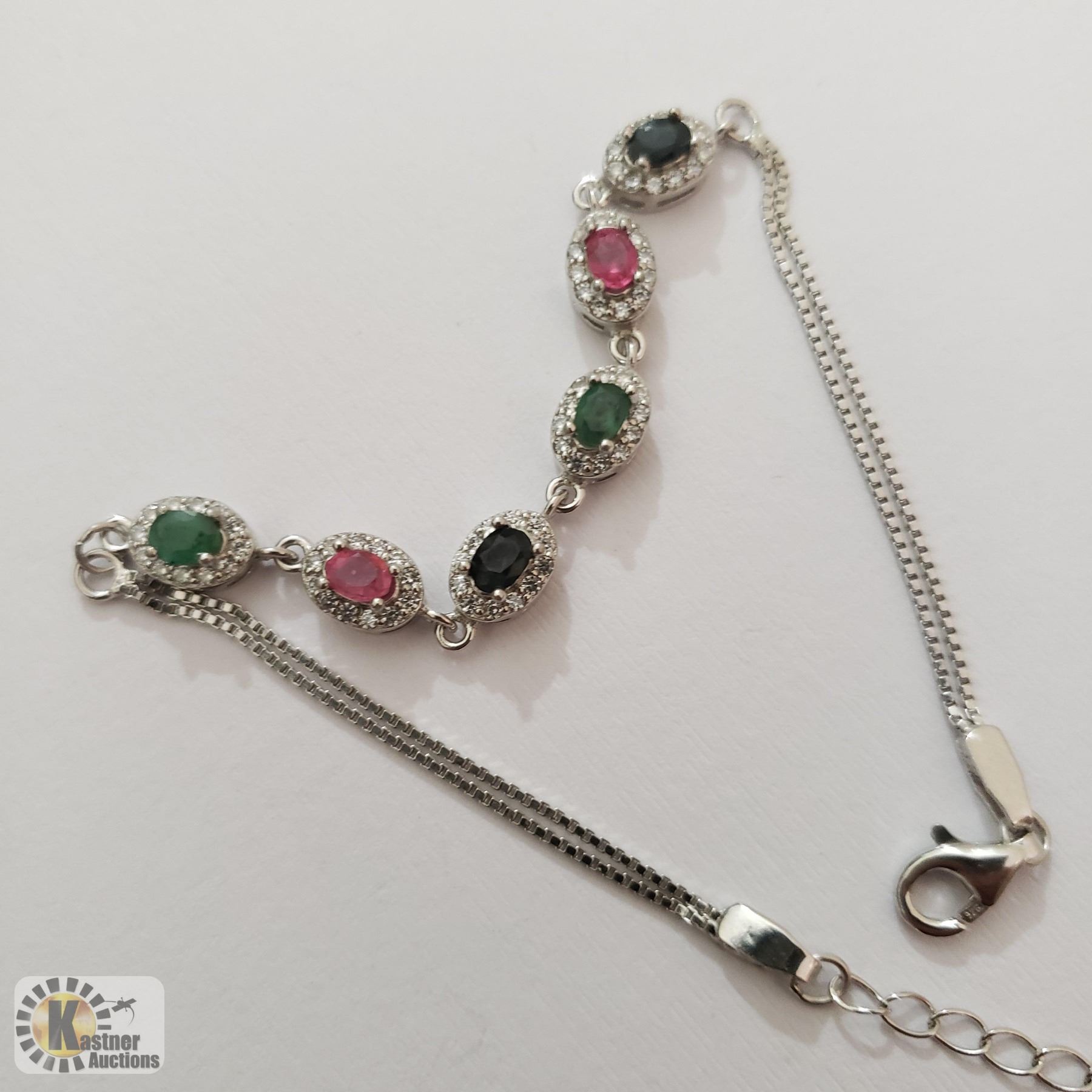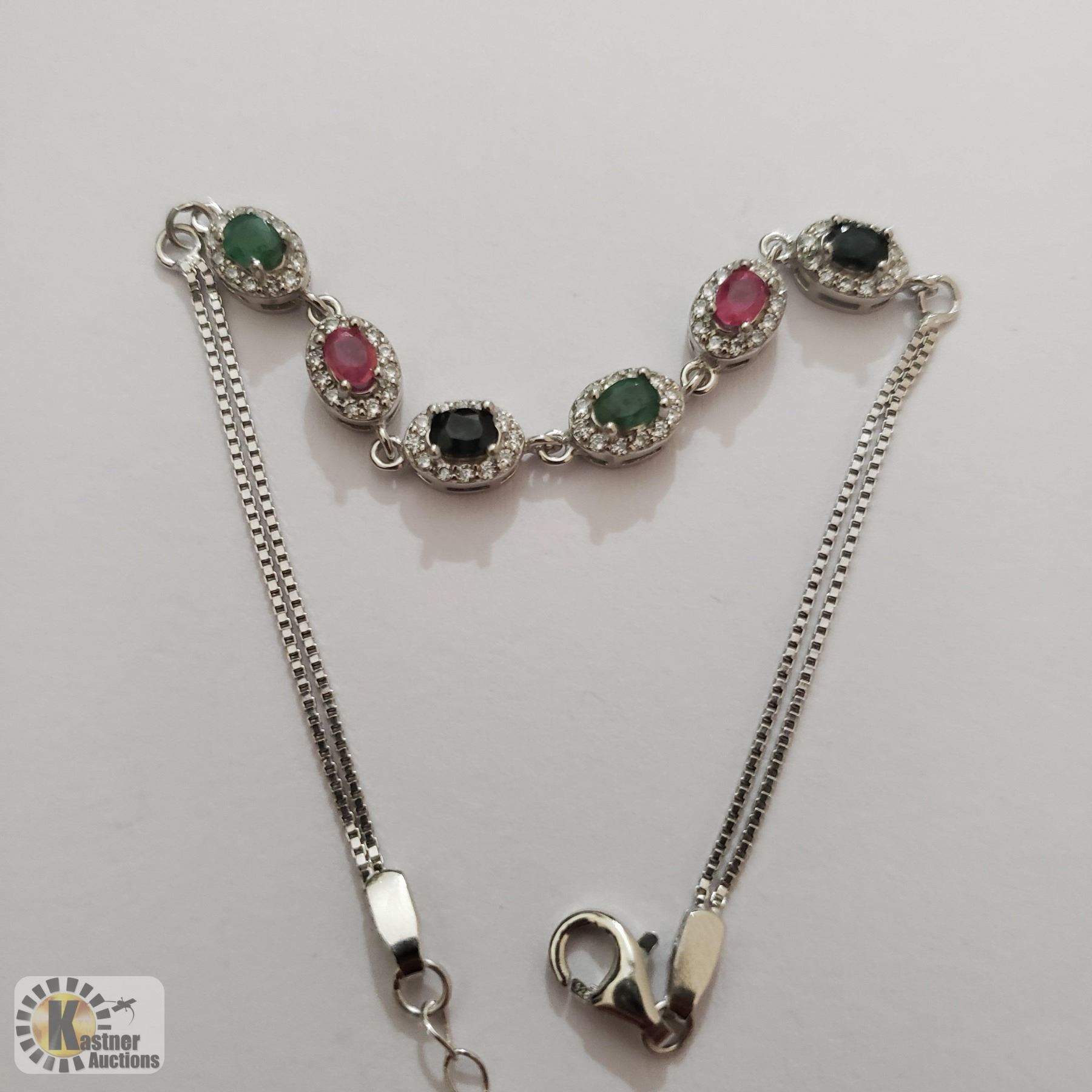 SILVER RUBY SAPPHIRE & EMERALD 7-8" BRACELET, SUGGESTED RETAIL VALUE $300