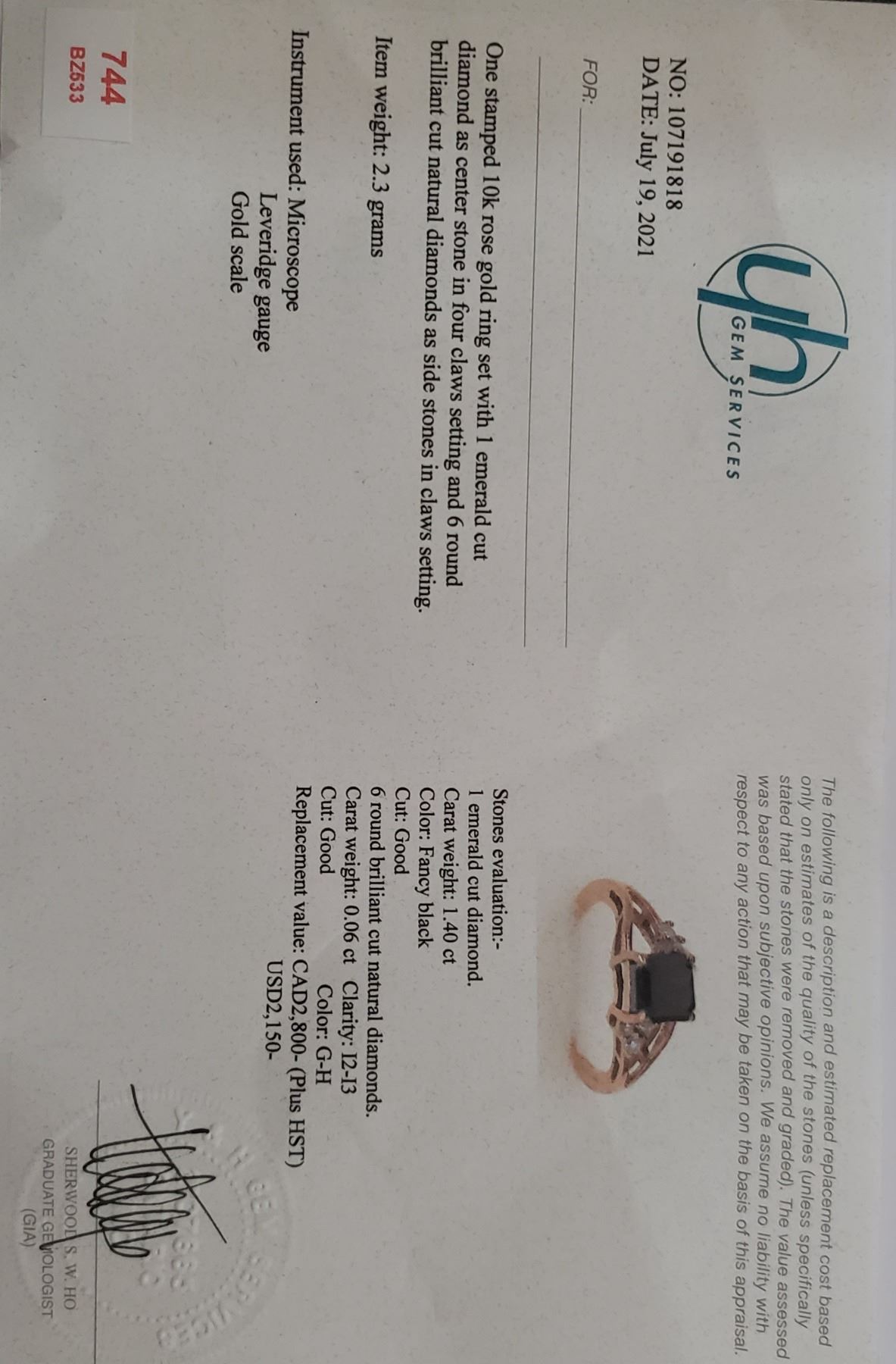 10K ROSE GOLD BLACK DIAMOND (1.4CT) DIAMOND (0.06CT) RING, MADE IN CANADA, SUGGESTED RETAIL VALUE $1700