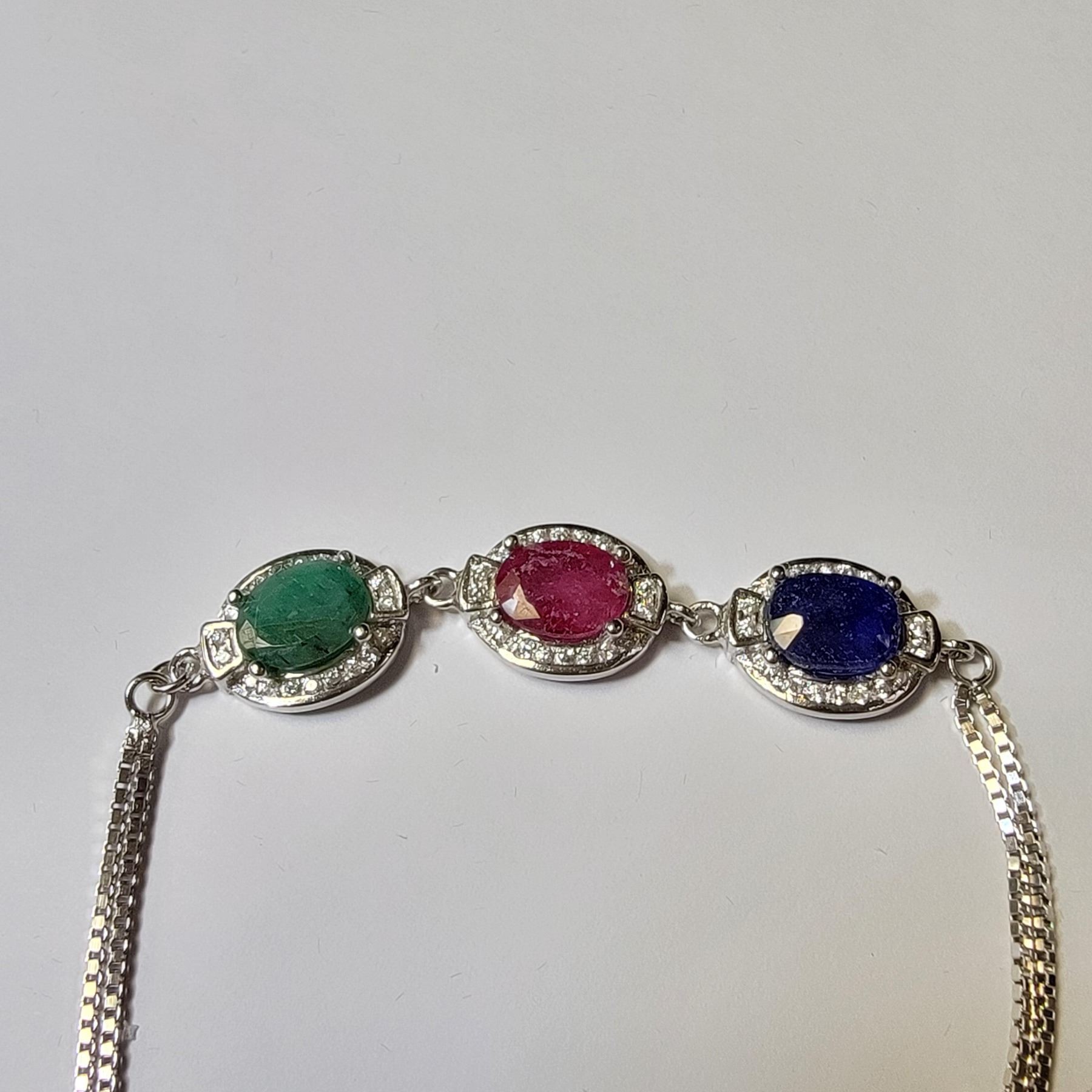 SILVER RUBY EMERALD SAPPHIRE APX 7.5-8"(4.5CT) BRACELET (~WEIGHT 5.68G), APPRAISED RETAIL $350