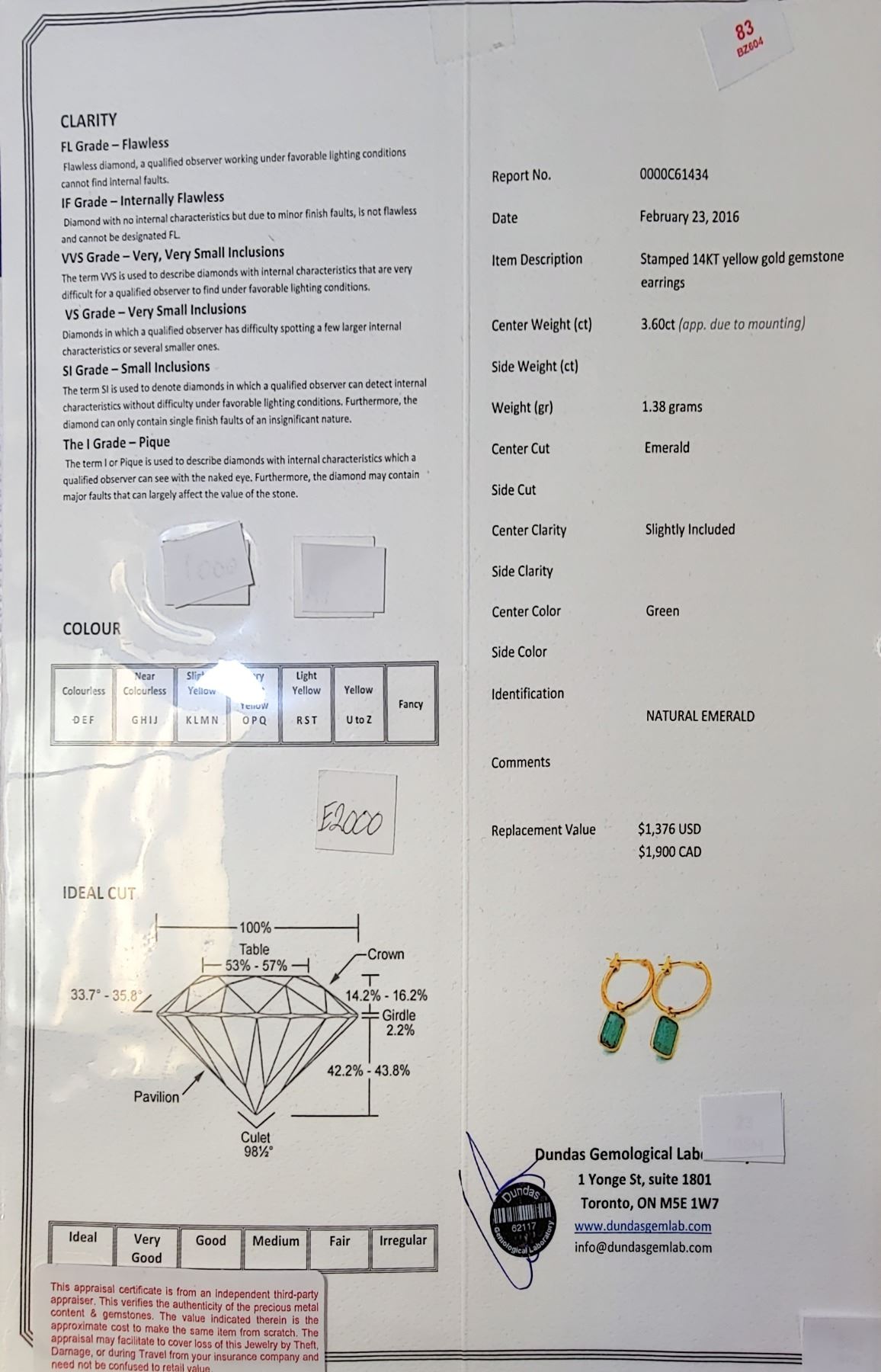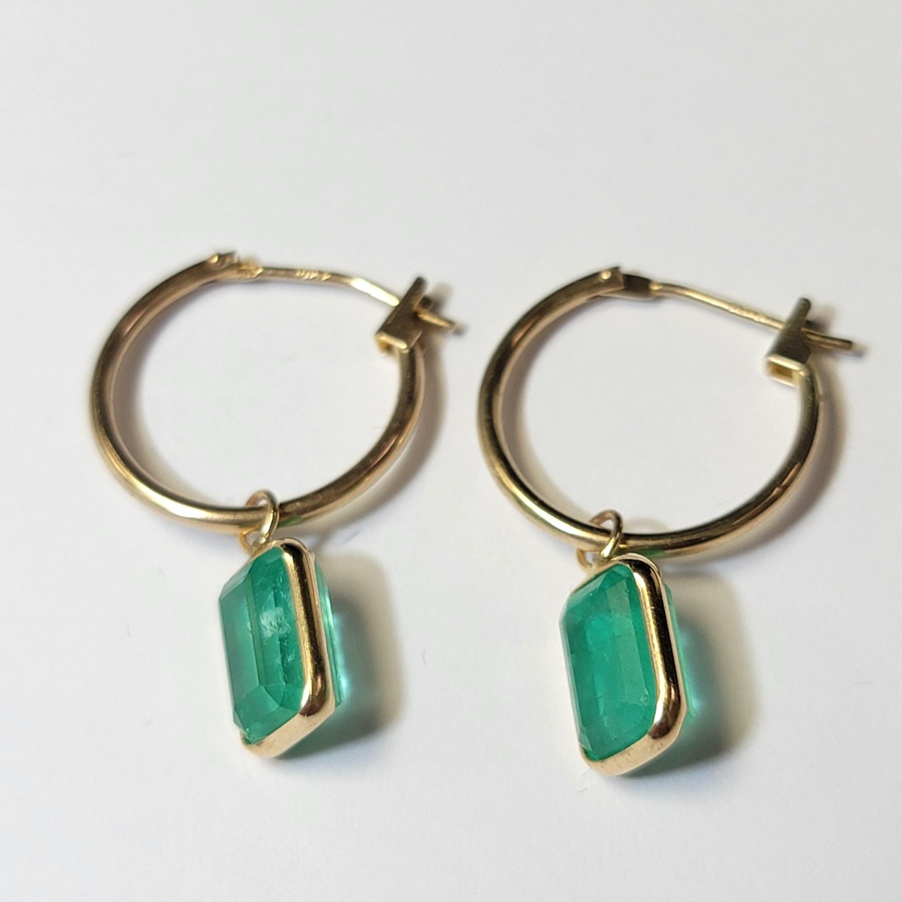 14K YELLOW GOLD EMERALD(3.6CT) EARRINGS (~WEIGHT 1.38G), MADE IN CANADA, APPRAISED RETAIL $2000
