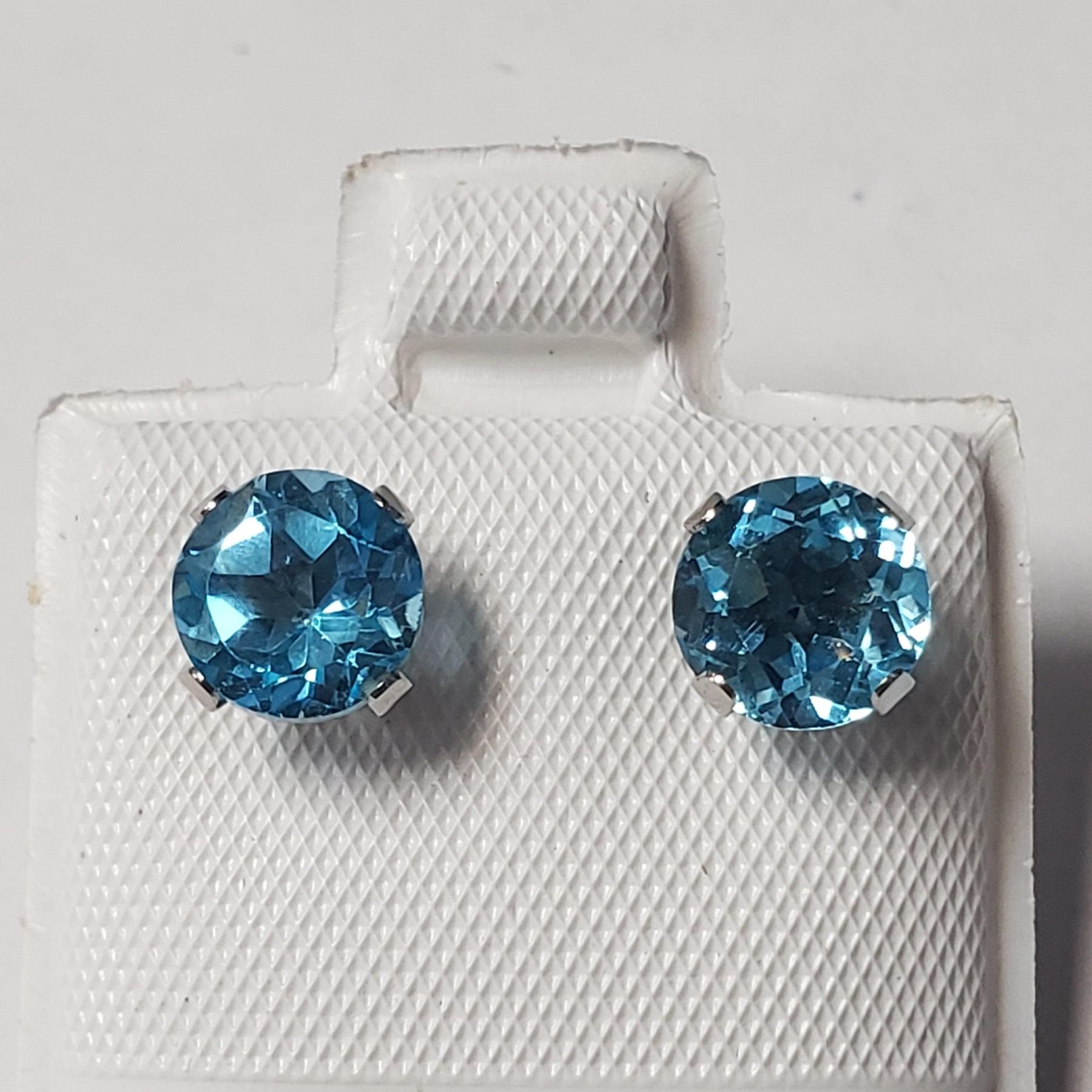 10K WHITE GOLD BLUE TOPAZ(2.2CT) EARRINGS, MADE IN CANADA, SUGGESTED RETAIL VALUE $360