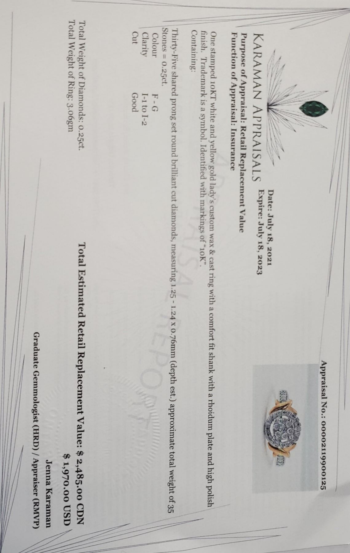 10K WHITE GOLD (0.25CT,I1-2,F-G) RING. MADE IN CANADA, SUGGESTED RETAIL VALUE $2485