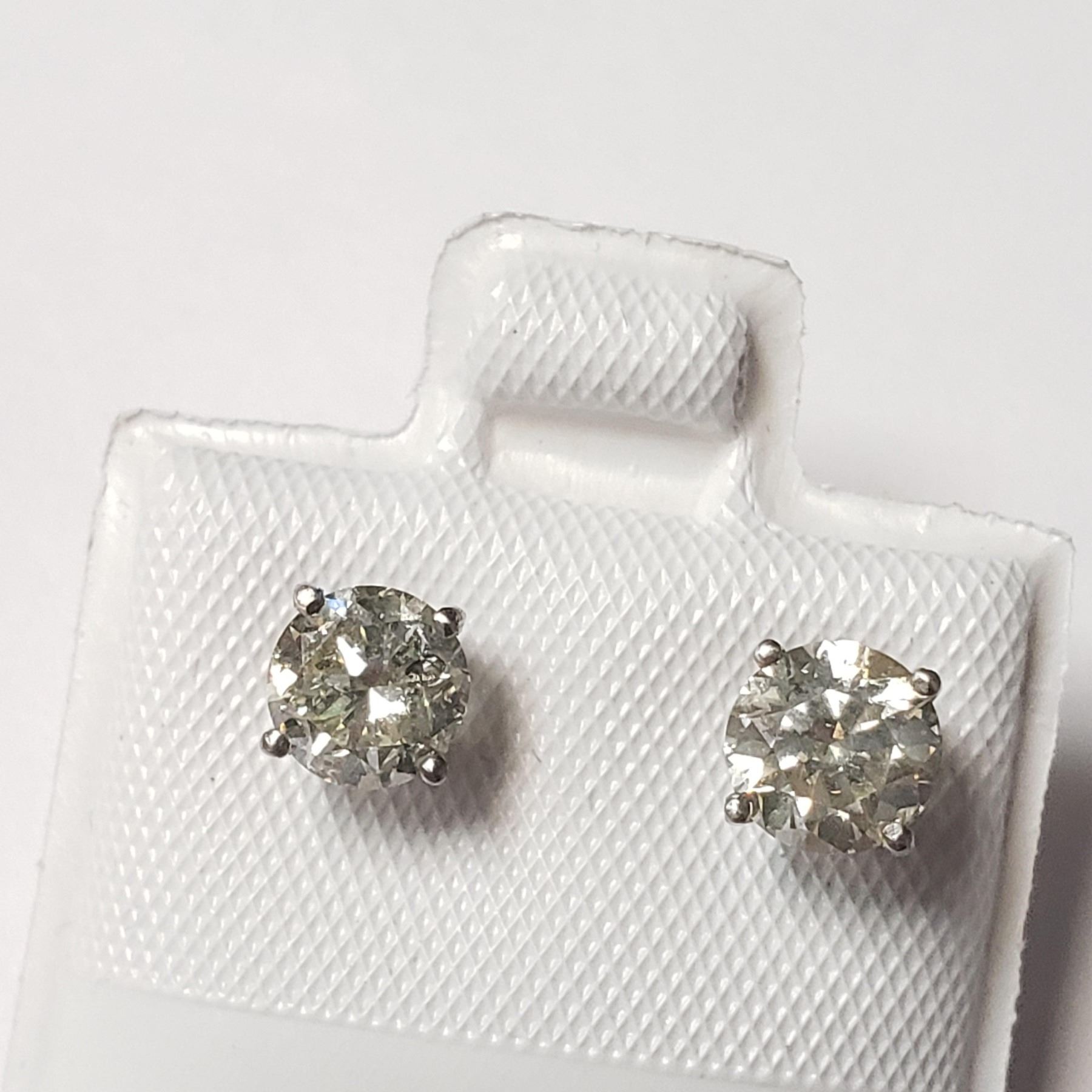 14K WHITE GOLD DIAMOND (1.1CT,SI2-I1,G-H) EARRINGS (~WEIGHT 0.88G), MADE IN CANADA, SUGGESTED RETAIL VALUE $2200