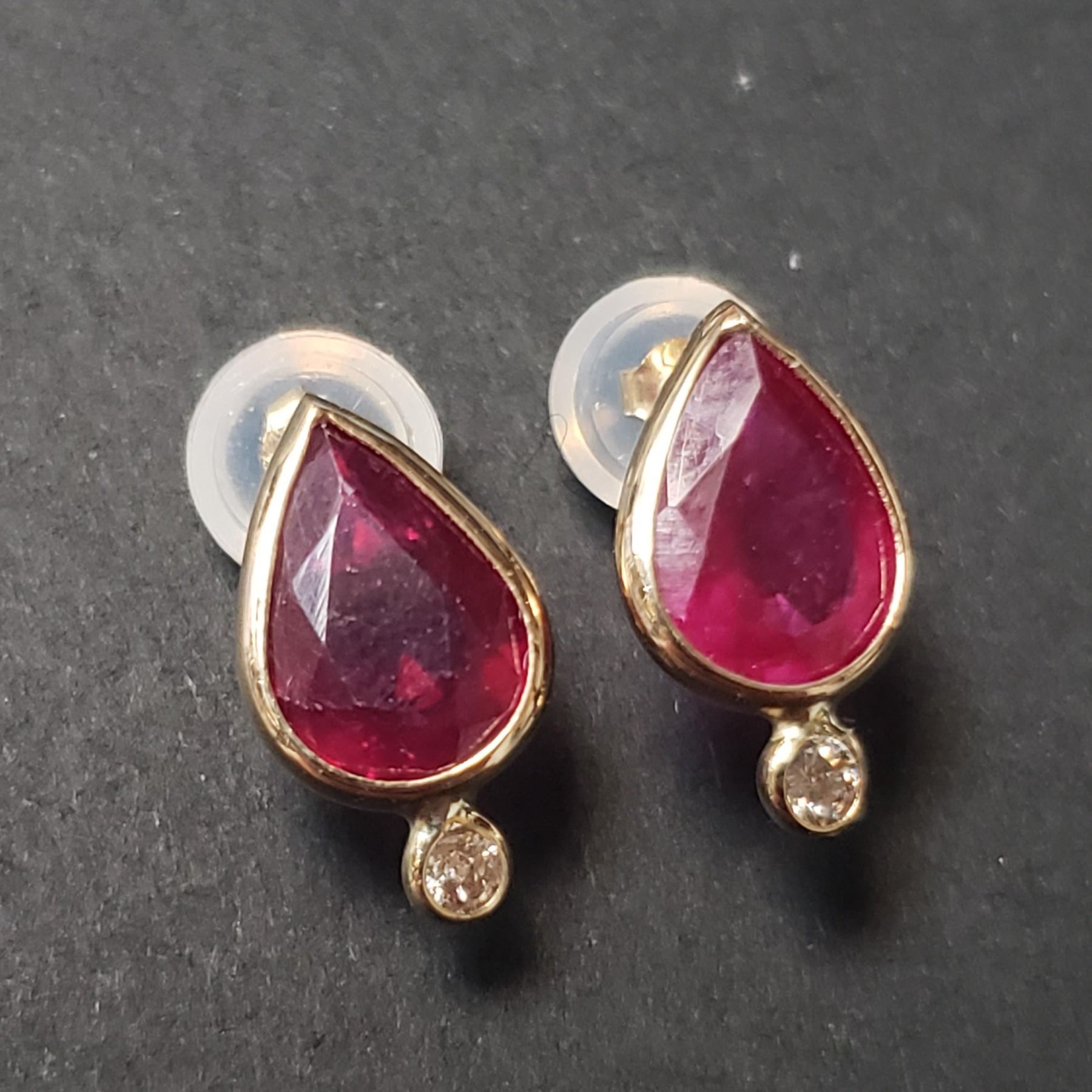 14K YELLOW GOLD RUBY(2.9CT) DIAMOND(0.1CT) EARRINGS (~WEIGHT 1.02G), MADE IN CANADA, APPRAISED RETAIL $1195