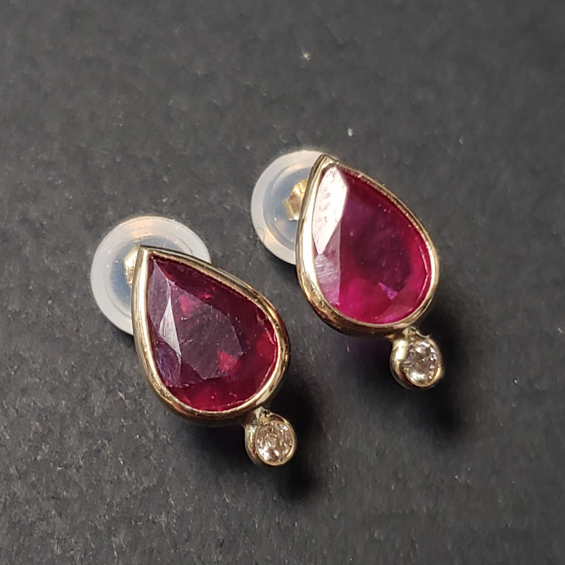 14K YELLOW GOLD RUBY(2.9CT) DIAMOND(0.1CT) EARRINGS (~WEIGHT 1.02G), MADE IN CANADA, APPRAISED RETAIL $1195