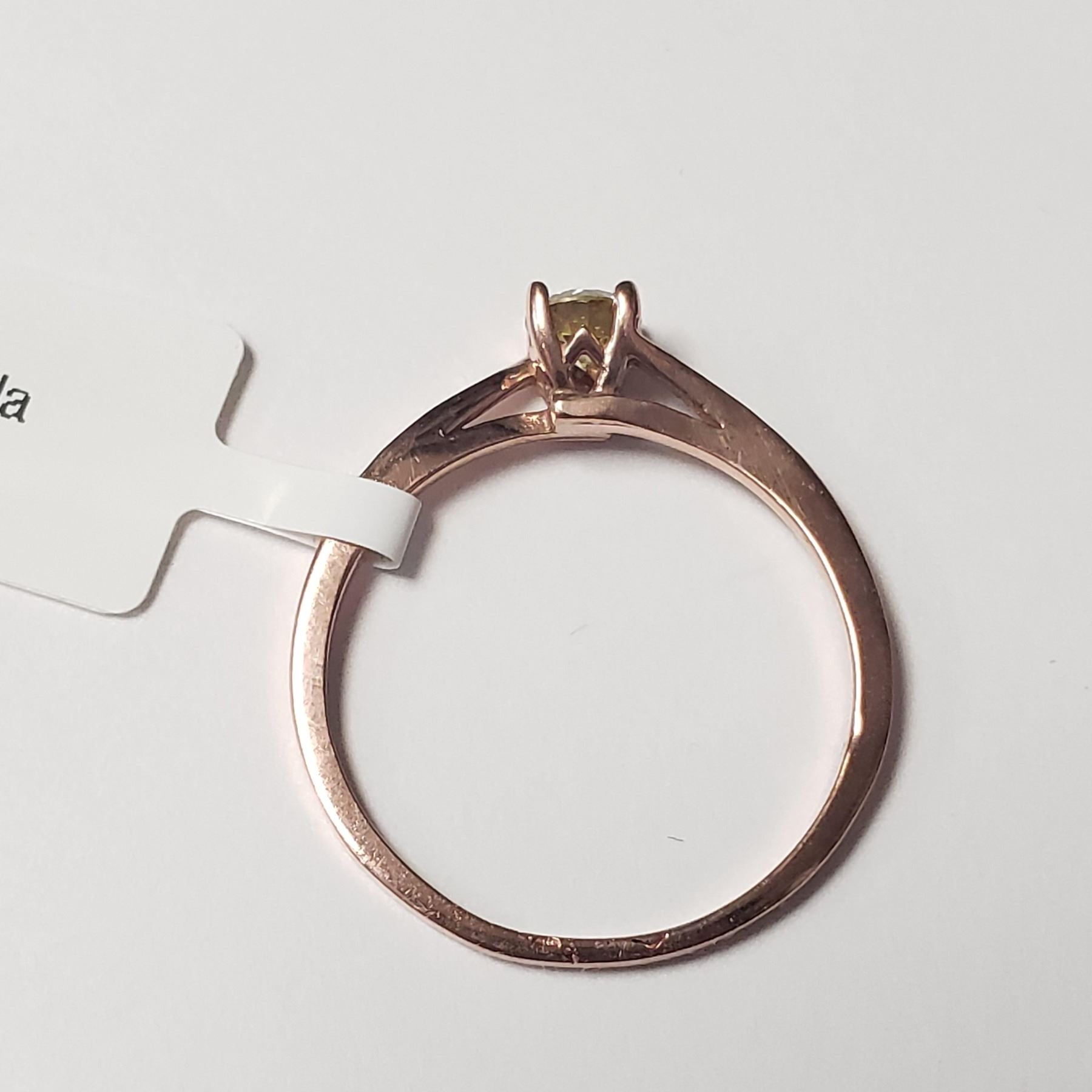 10K ROSE GOLD DIAMOND (0.25CT,I1,YELLOW) RING (~SIZE 6.5)(RING IS RESIZABLE FOR $40) (~LENGTH INCHES) (~WEIGHT 1.12G), MADE IN CANADA, SUGGESTED RETAIL VALUE $1400