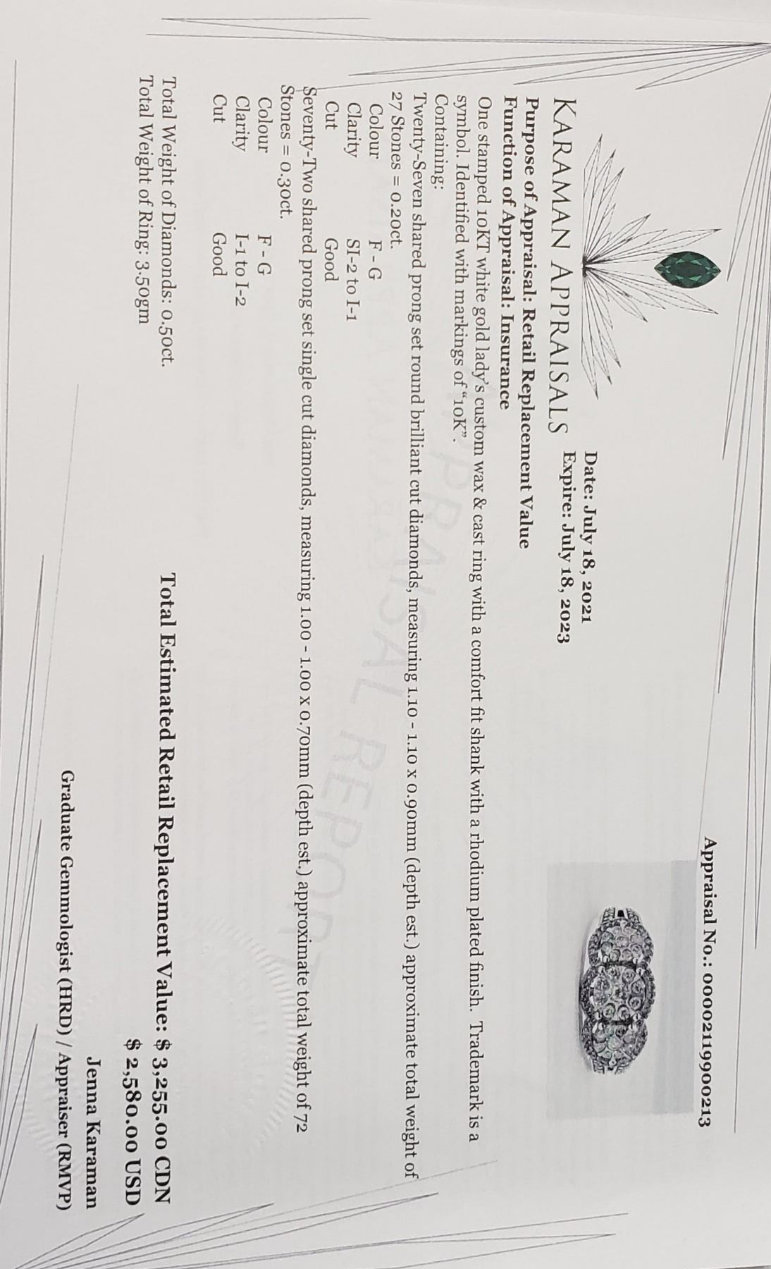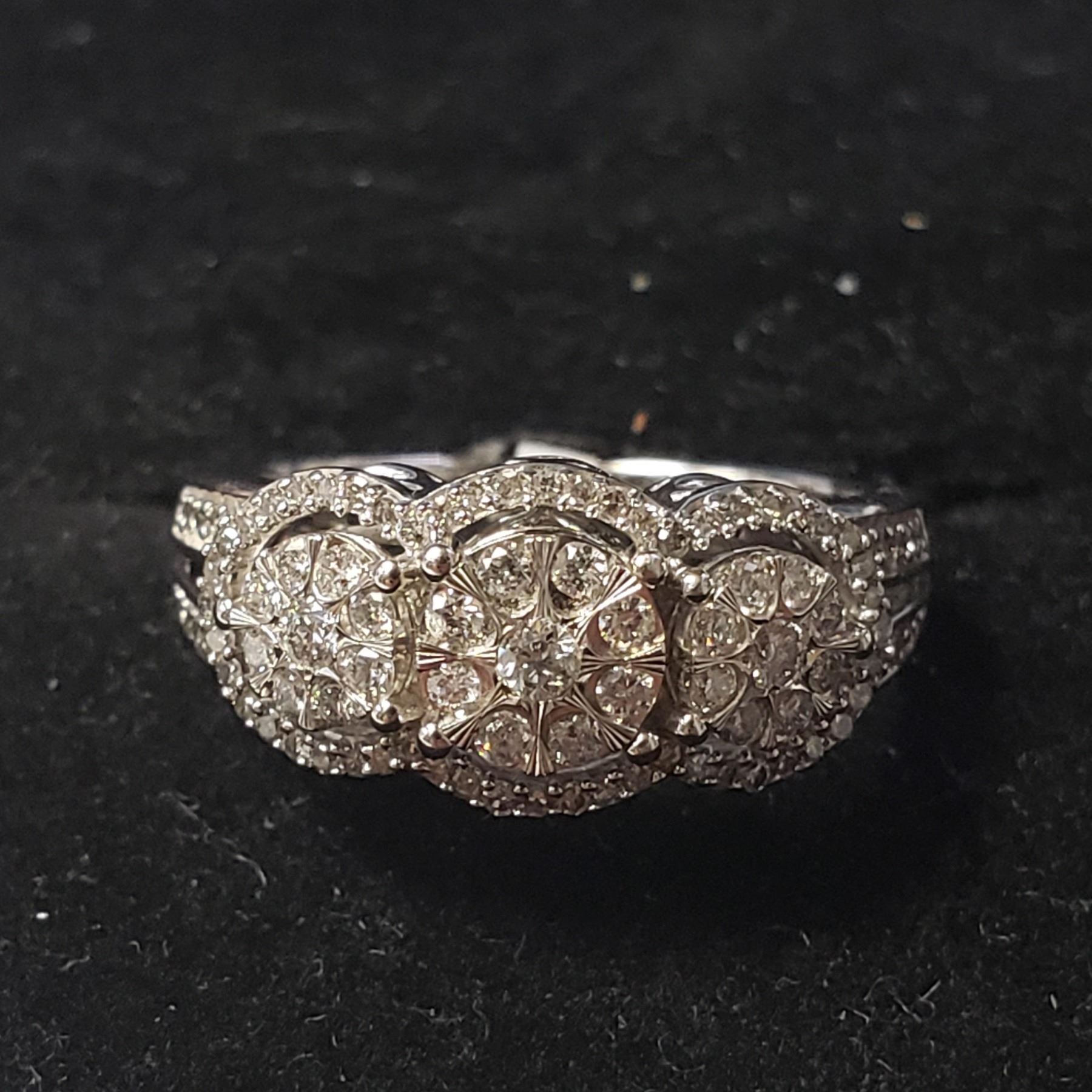 10K WHITE GOLD DIAMOND (0.5CT) RING (~SIZE 7)(RING IS RESIZABLE FOR $40) (~WEIGHT 3.5G), MADE IN CANADA, APPRAISED RETAIL $1500