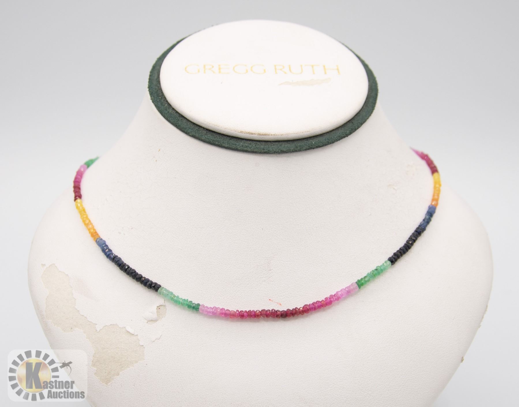 10K WHITE GOLD NATURAL RUBY SAPPHIRE AND EMERALD 16"(36CT) NECKLACE (~LENGTH 16"INCHES) (~WEIGHT 7.45G), MADE IN CANADA, APPRAISED RETAIL $1580