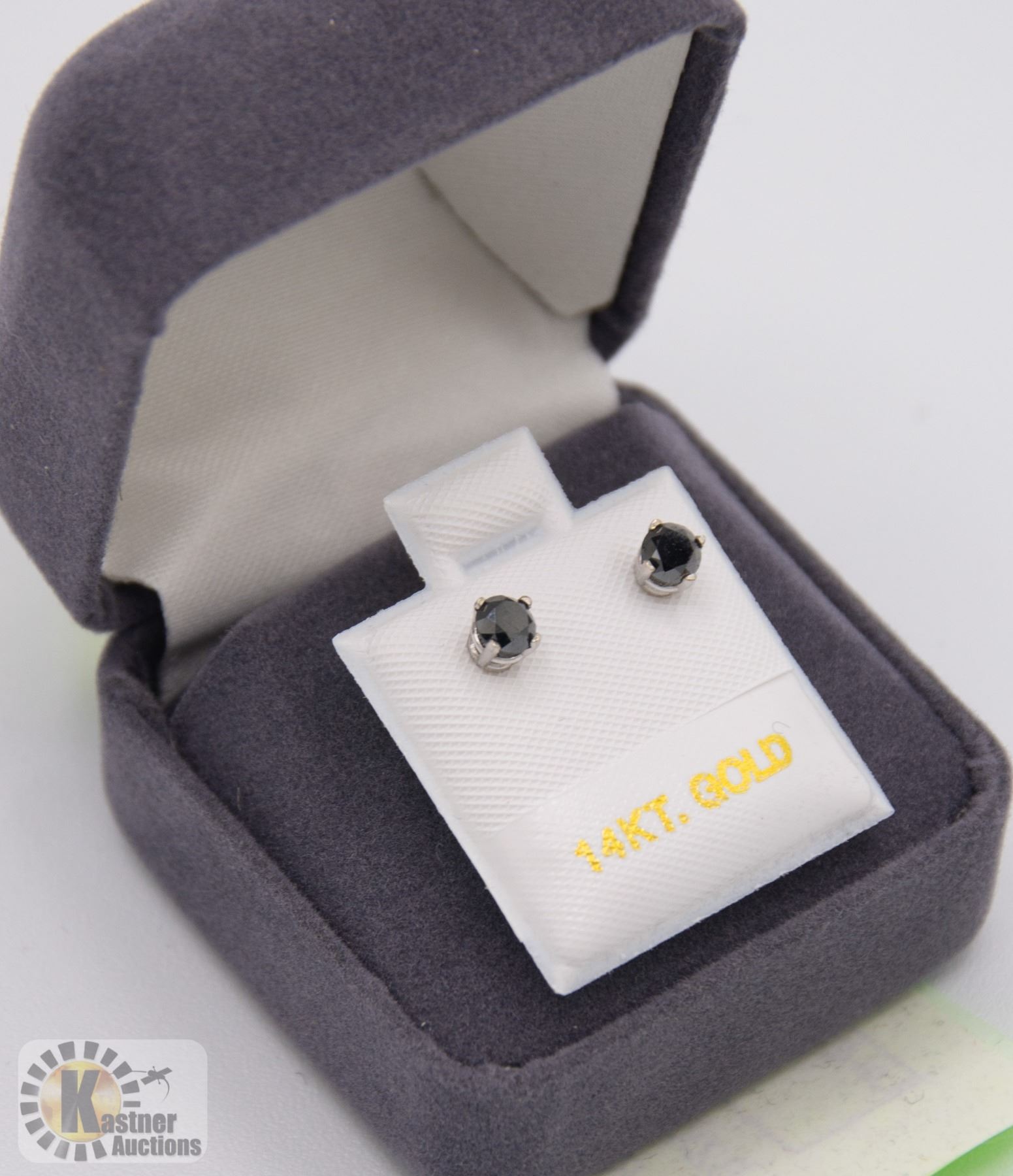 14K WHITE GOLD BLACK DIAMOND(0.5CT) EARRINGS (~WEIGHT 0.51G), MADE IN CANADA, APPRAISED RETAIL $1000