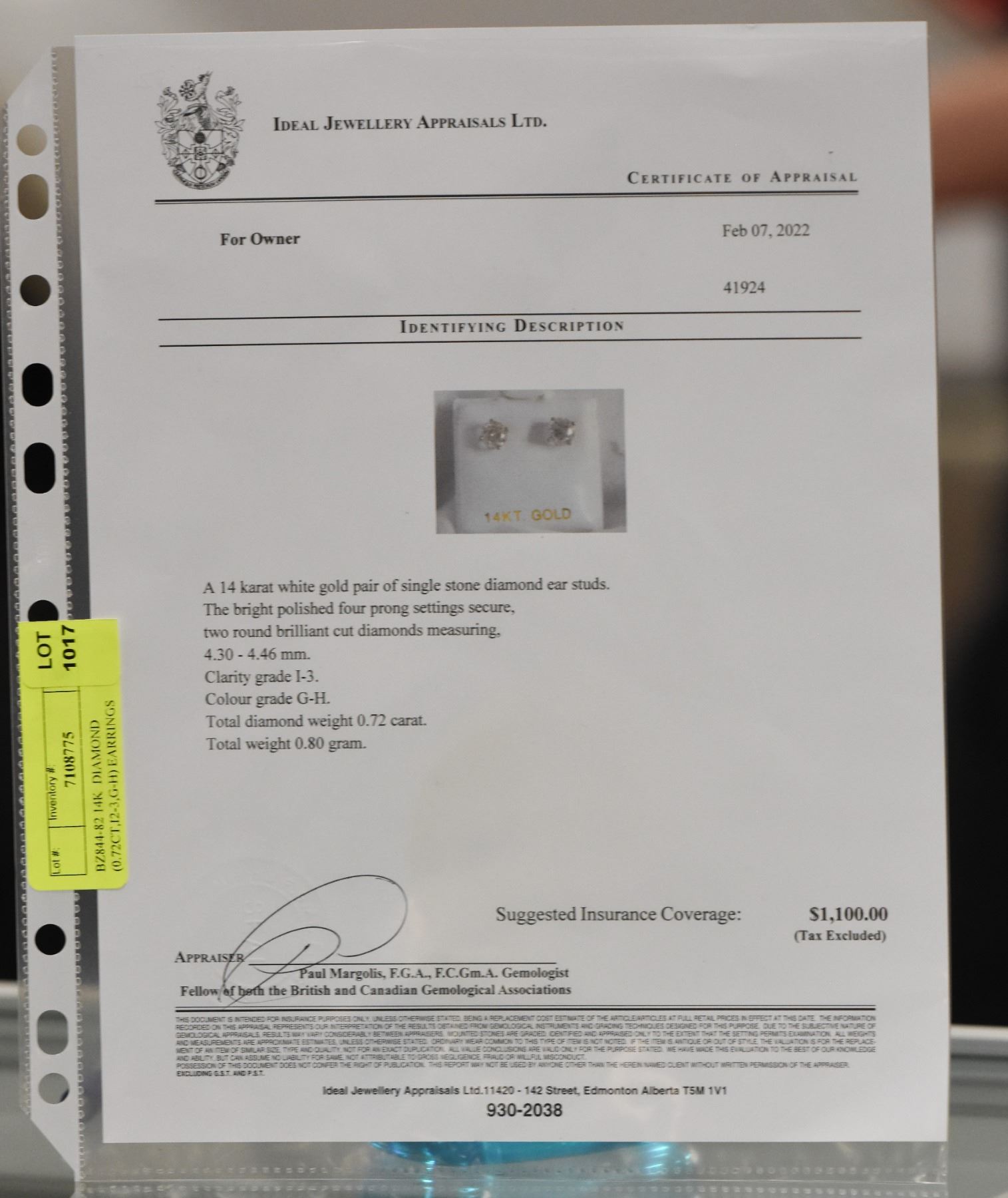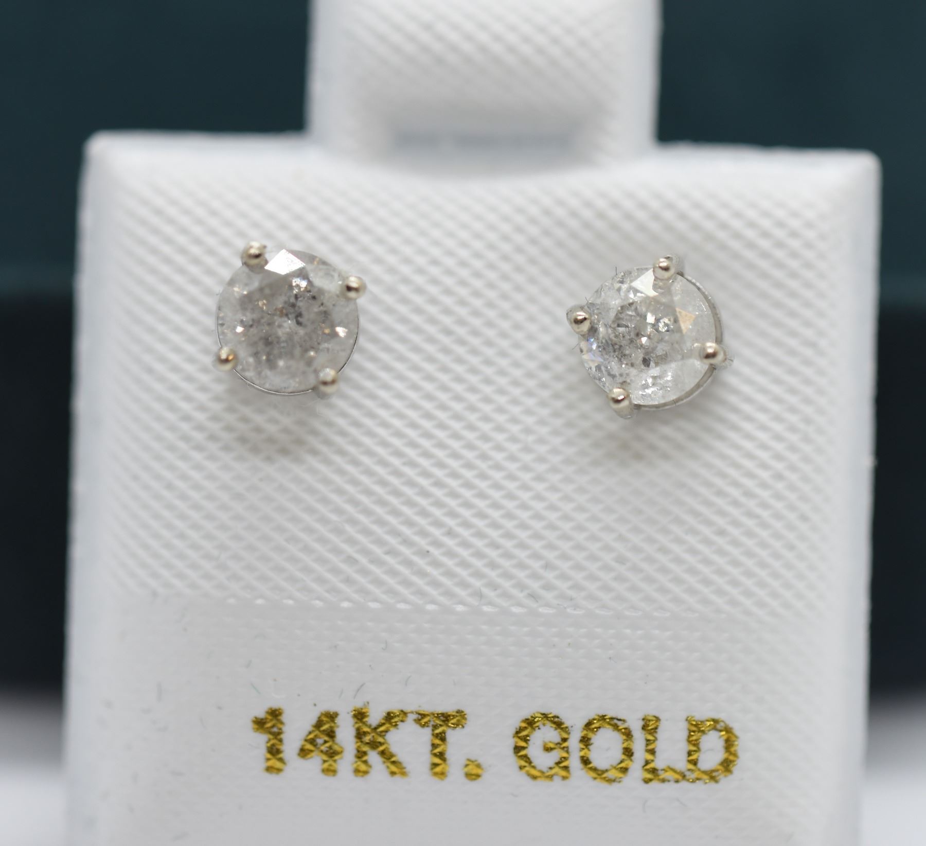14K WHITE GOLD DIAMOND (0.72CT,I2-3,G-H) EARRINGS (~WEIGHT 0.79G), MADE IN CANADA, APPRAISED RETAIL $1100